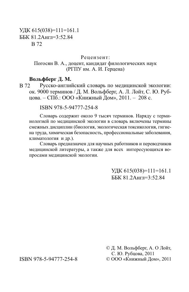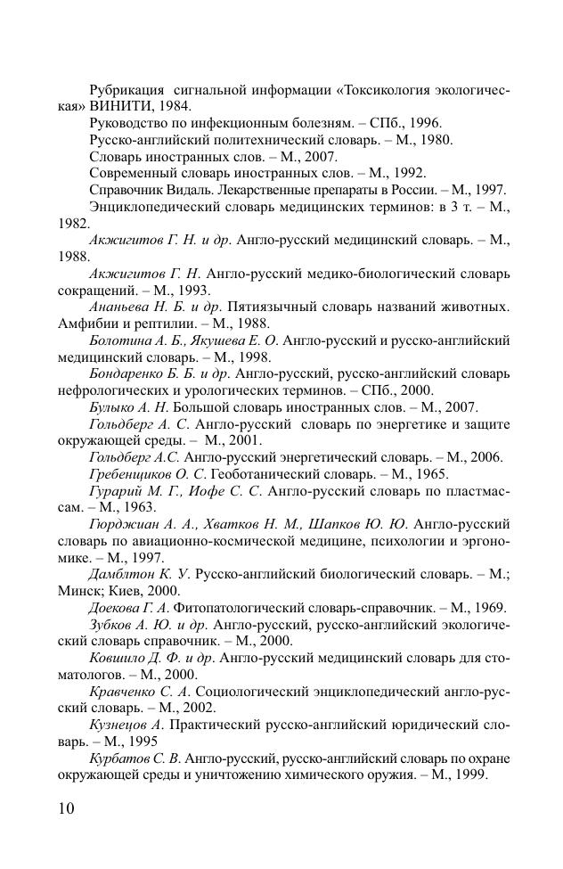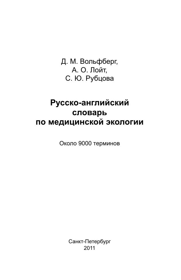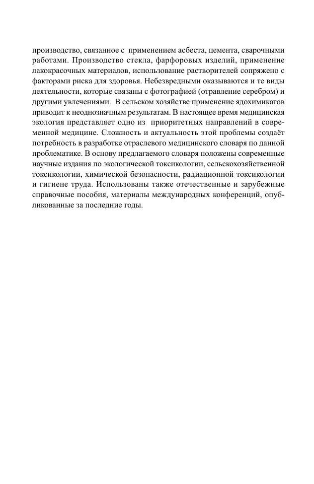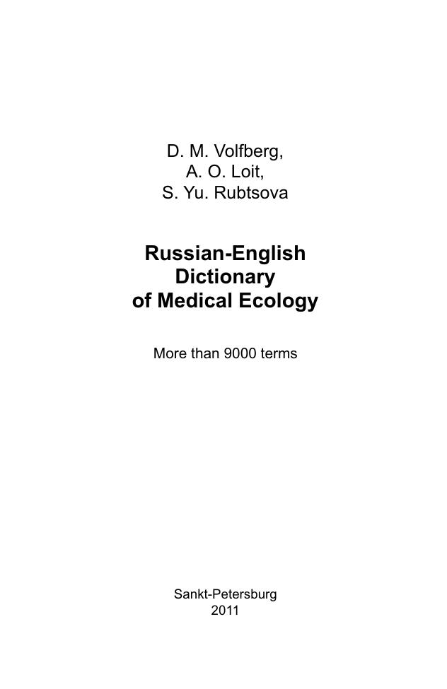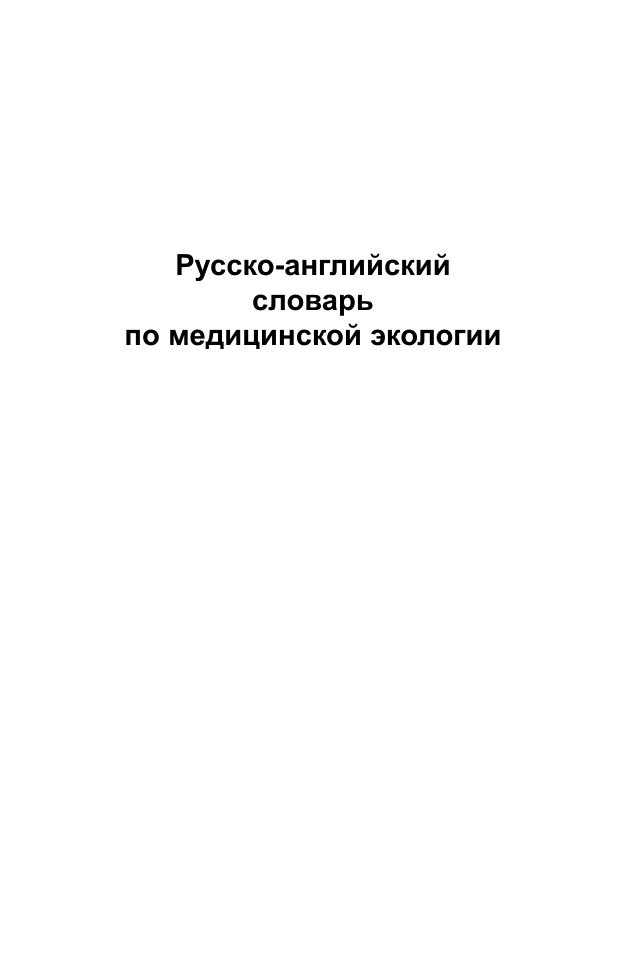 Словарь предназначен для научных работников и переводчиков медицинской литературы, а также для всех интересующихся вопросами медицинской экологии.