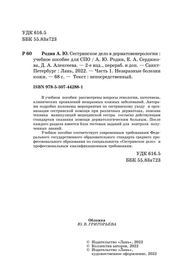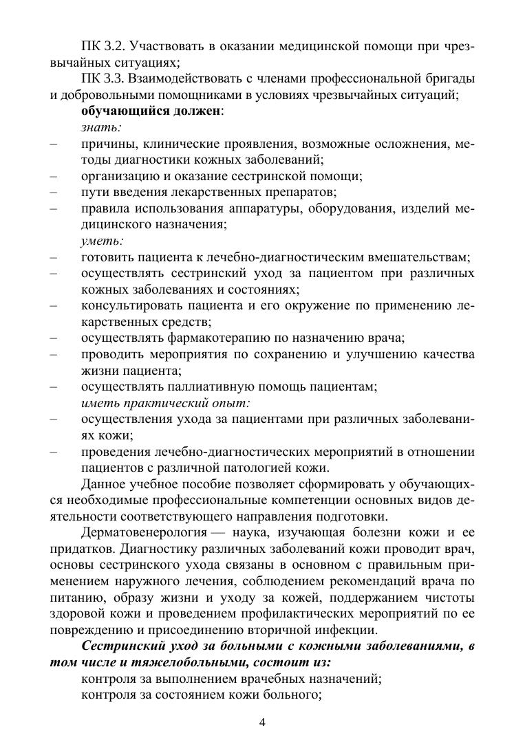 В учебном пособии рассмотрены вопросы этиологии, патогенеза, клинических проявлений незаразных кожных заболеваний. Авторами подробно изложены мероприятия по сестринскому уходу и организации сестринской помощи при различных дерматозах, описана техника манипуляций медицинской сестры согласно действующим стандартам оказания помощи дерматологическим больным. После каждого раздела имеется блок тестовых заданий для контроля полученных знаний. Учебное пособие соответствует современным требованиям Федерального государственного образовательного стандарта среднего профессионального образования по специальности «Сестринское дело» и профессиональным квалификационным требованиям.