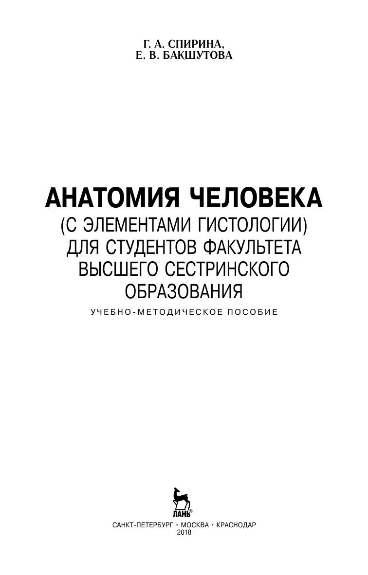 Анатомия человека (с элементами гистологии) для студентов факультета высшего сестринского образования