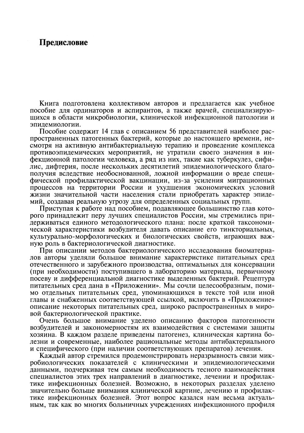 В книге освещены вопросы частной микробиологии, современная классификация микроорганизмов, способы их выделения, культивирования, диагностики. Описаны морфологические, тинкториальные, культуральные, антигенные и патогенные свойства микробов, а также патогенез, методы профилактики и лечения вызываемых ими инфекций. Приведены новые данные о бактериях различных таксономических групп, возбудителях антропонозов и зоонозов. Включены материалы о недостаточно изученных микроорганизмах: бартонеллах, эрлихиях, брахиспирах.