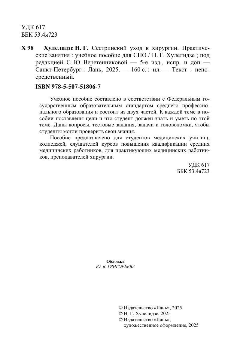 Учебное пособие составлено в соответствии с Федеральным государственным образовательным стандартом среднего профессионального образования и состоит из двух частей. К каждой теме в пособии поставлены цели и что студент должен знать и уметь по этой теме. Даны вопросы, тестовые задания, задачи и головоломки, чтобы студенты могли проверить свои знания. Пособие предназначено для студентов медицинских училищ, колледжей, слушателей курсов повышения квалификации средних медицинских работников, для практикующих медицинских работников, преподавателей хирургии.