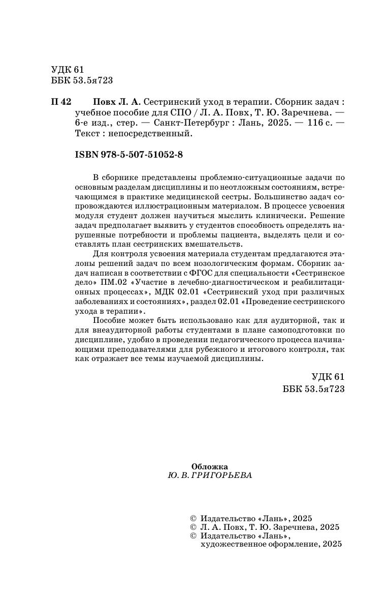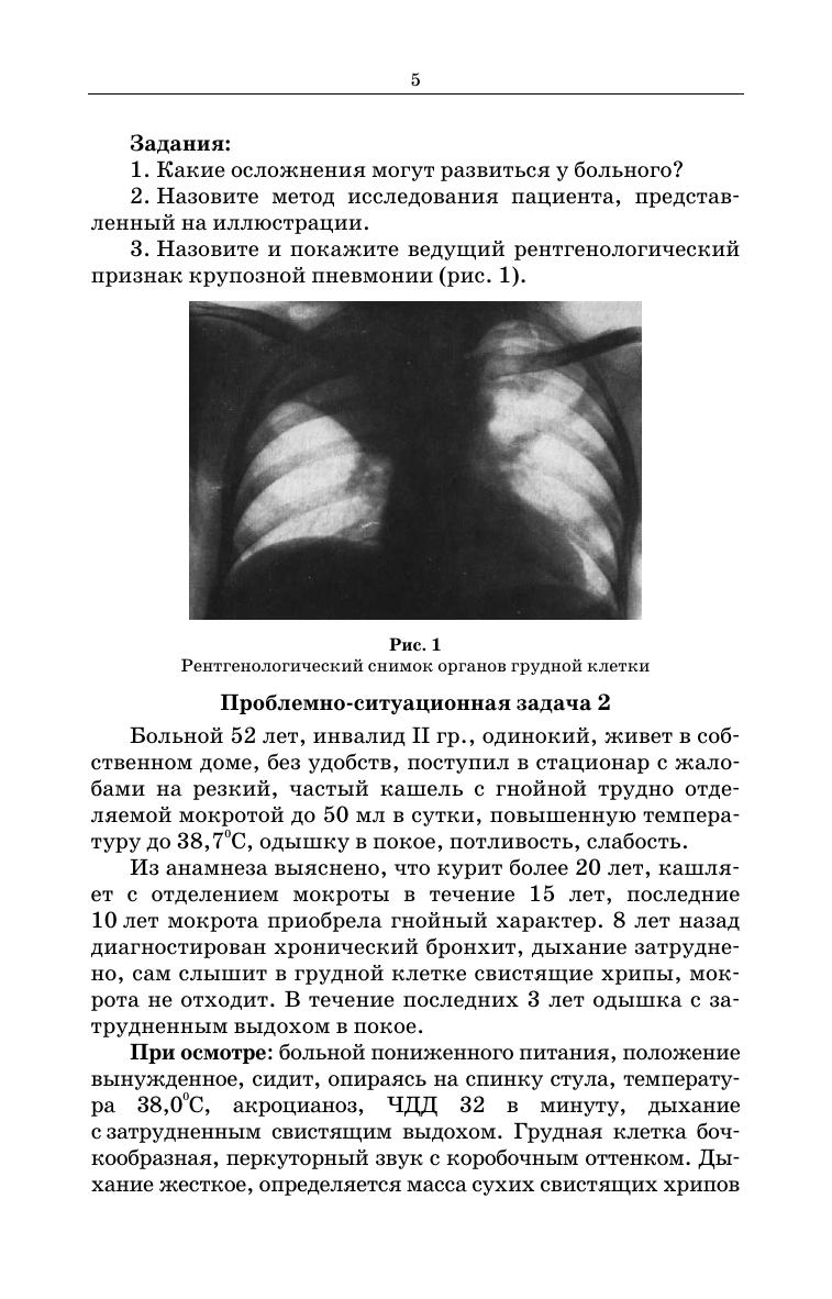В сборнике представлены проблемно ситуационные задачи по основным разделам дисциплины и по неотложным состояниям, встречающимся в практике медицинской сестры. Большинство задач сопровождаются иллюстрационным материалом. В процессе усвоения модуля студент должен научиться мыслить клинически. Решение задач предполагает выявить у студентов способность определять нарушенные потребности и проблемы пациента, выделять цели и составлять план сестринских вмешательств. Для контроля усвоения материала студентам предлагаются эталоны решений задач по всем нозологическим формам. Сборник задач написан в соответствии с ФГОС для специальности «Сестринское дело» ПМ 02. «Участие в лечебно диагностическом и реабилитационных процессах», МДК 02.01. «Сестринский уход при различных заболеваниях и состояниях», раздел 02.01. «Проведение сестринского ухода в терапии». Пособие может быть использовано как для аудиторной, так и для внеаудиторной работы студентами в плане самоподготовки по дисциплине, удобно в проведении педагогического процесса начинающими преподавателями для рубежного и итогового контроля, так как отражает все темы изучаемой дисциплины.