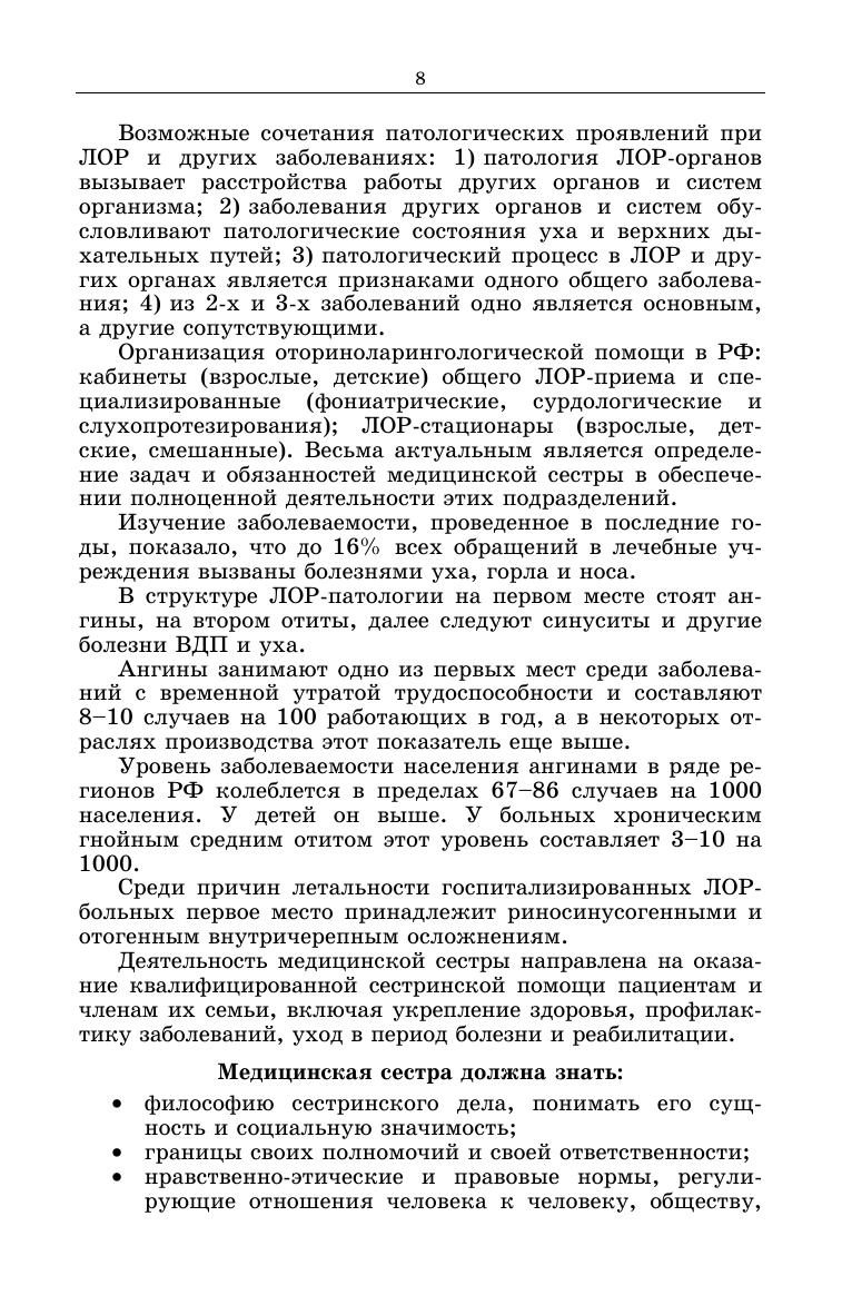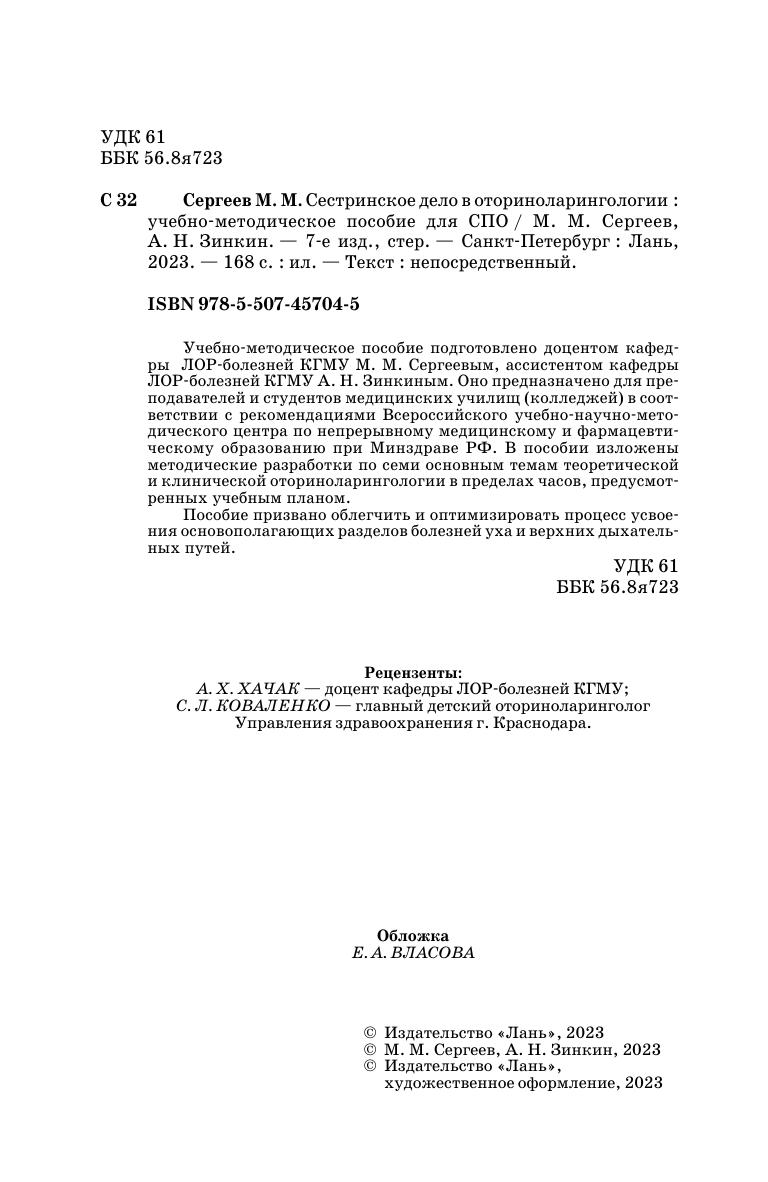 Учебно-методическое пособие подготовлено доцентом кафедры ЛОР-болезней КГМУ М. М. Сергеевым, ассистентом кафедры ЛОР-болезней КГМУ А. Н. Зинкиным. Оно предназначено для преподавателей и студентов медицинских училищ (колледжей) и факультетов ВСО медицинских вузов по специальности «Сестринское дело» в соответствии с рекомендациями Всероссийского учебно-научно-методического центра по непрерывному медицинскому и фармацевтическому образованию при Минздраве РФ. В пособии изложены методические разработки по семи основным темам теоретической и клинической оториноларингологии в пределах часов предусмотренных учебным планом. Пособие призвано облегчить и оптимизировать процесс усвоения основополагающих разделов болезней уха и верхних дыхательных путей.
