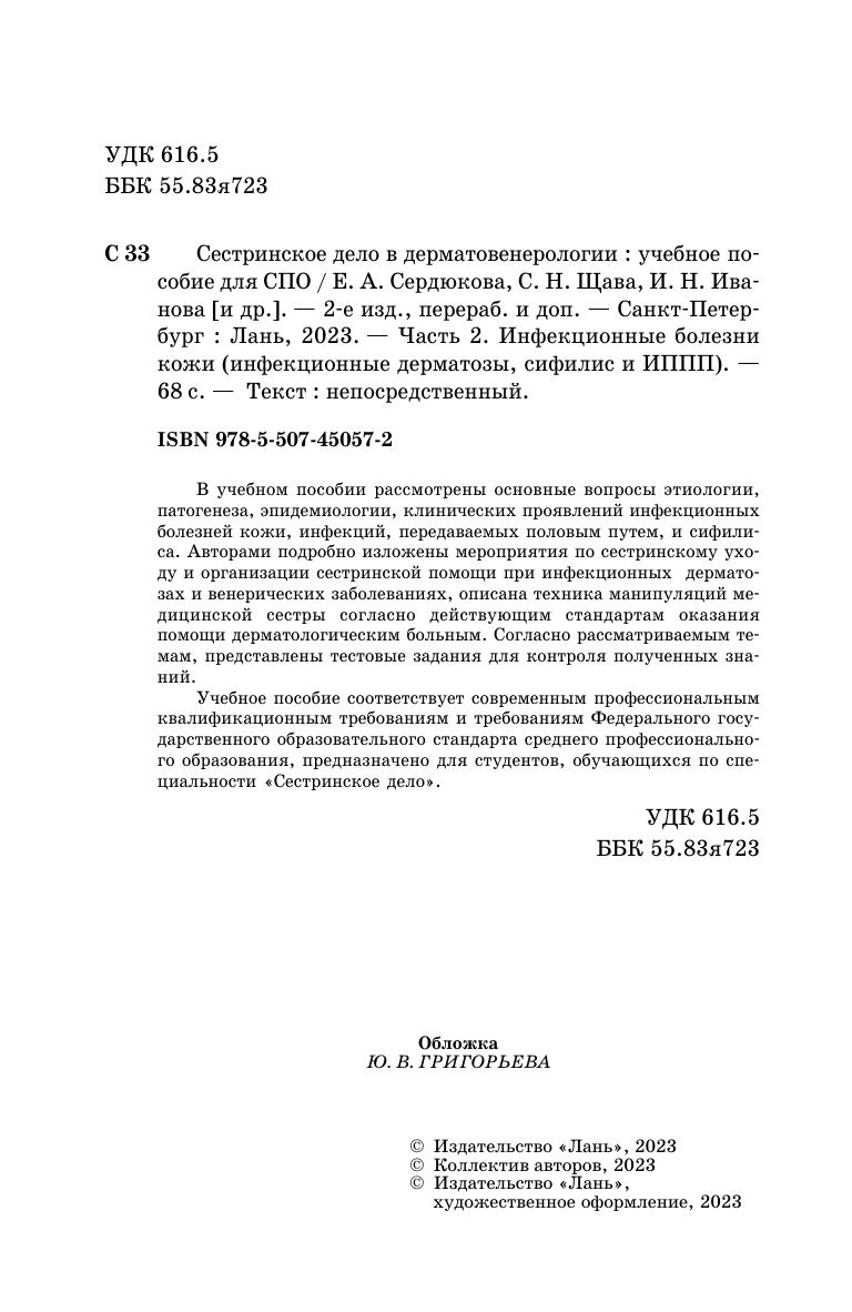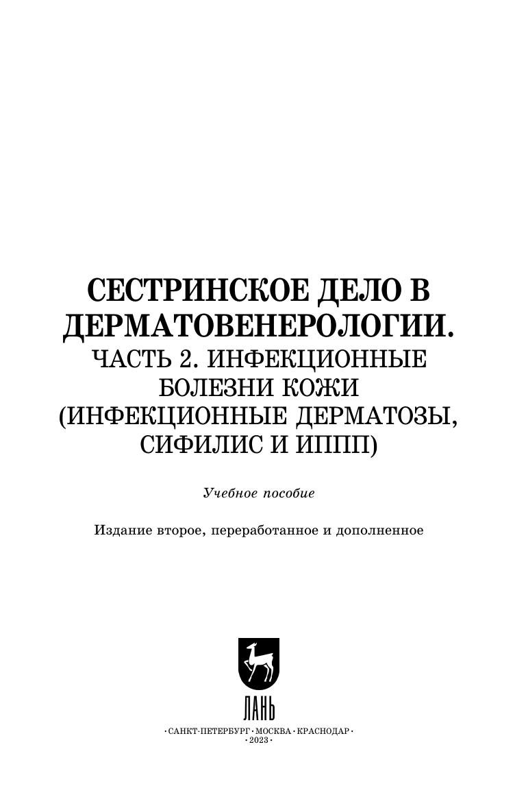 Сестринское дело в дерматовенерологии. Часть 2. Инфекционные болезни кожи (инфекционные дерматозы, сифилис и ИППП)