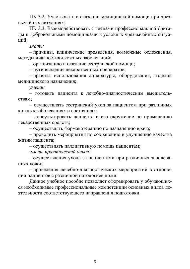 В учебном пособии рассмотрены основные вопросы этиологии, патогенеза, эпидемиологии, клинических проявлений инфекционных болезней кожи, инфекций, передаваемых половым путем, и сифилиса. Авторами подробно изложены мероприятия по сестринскому уходу и организации сестринской помощи при инфекционных дерматозах и венерических заболеваниях, описана техника манипуляций медицинской сестры согласно действующим стандартам оказания помощи дерматологическим больным. Согласно рассматриваемым темам, представлены тестовые задания для контроля полученных знаний. Учебное пособие соответствует современным профессиональным квалификационным требованиям и требованиям Федерального государственного образовательного стандарта среднего профессионального образования, предназначено для студентов, обучающихся по специальности «Сестринское дело».