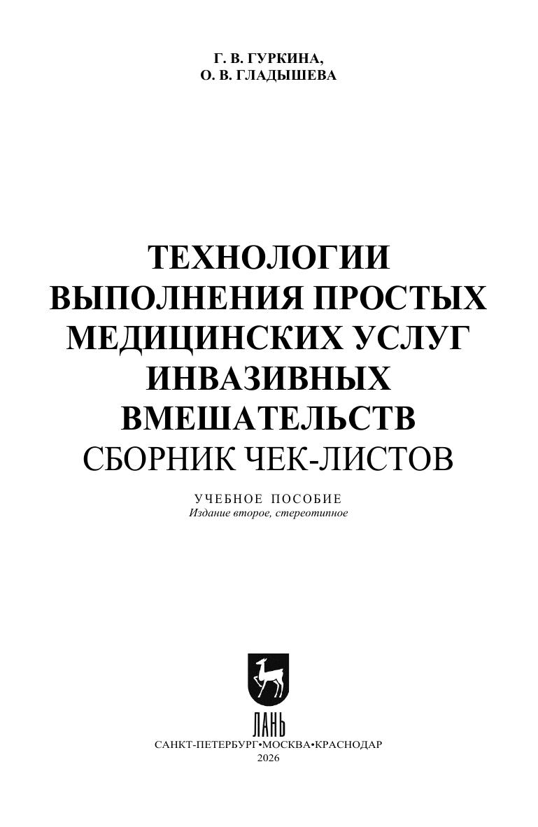 Технологии выполнения простых медицинских услуг инвазивных вмешательств. Сборник чек-листов
