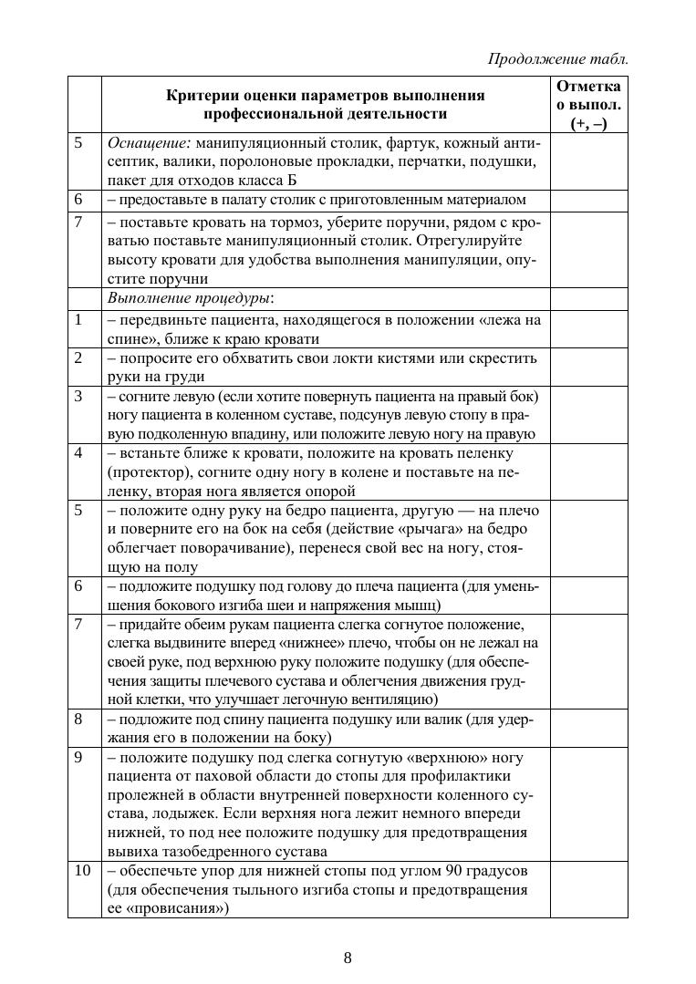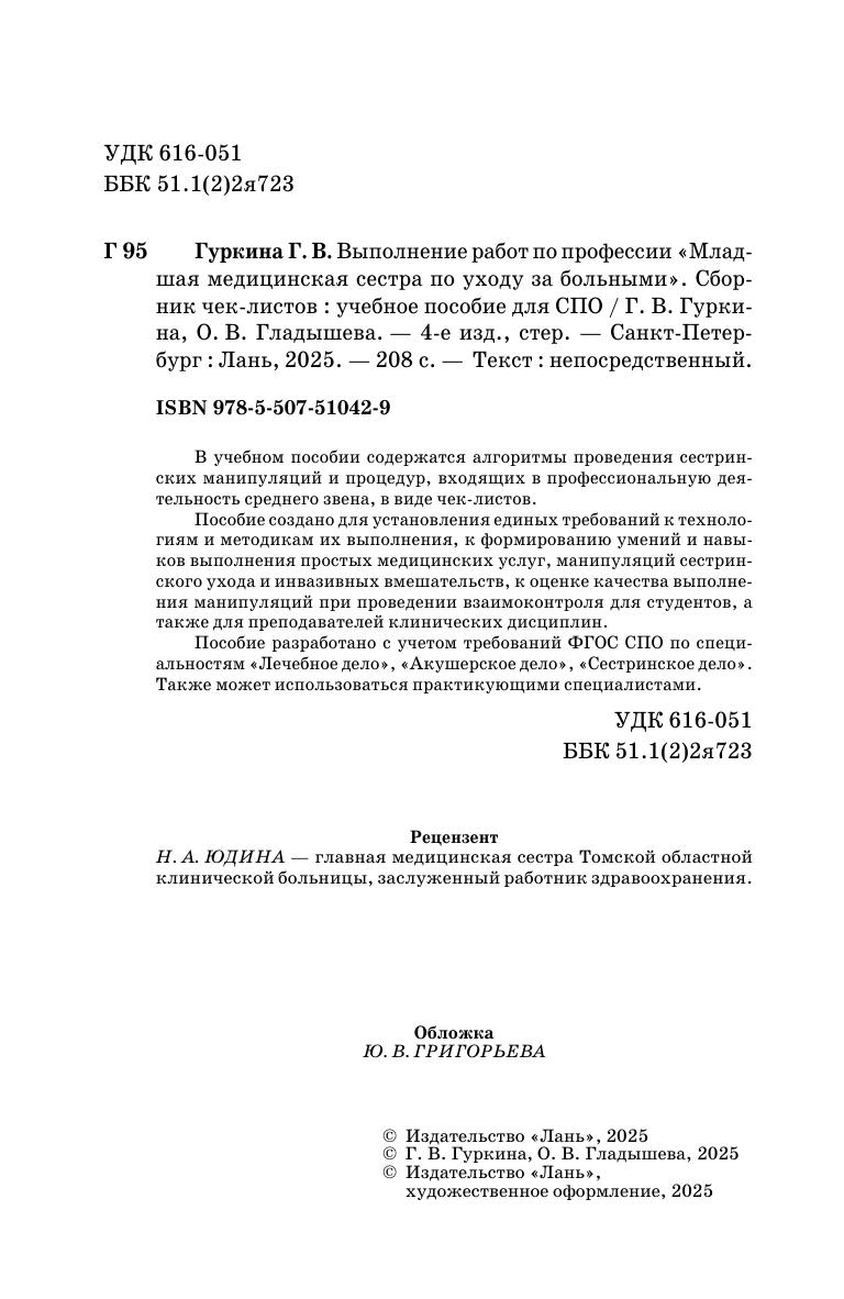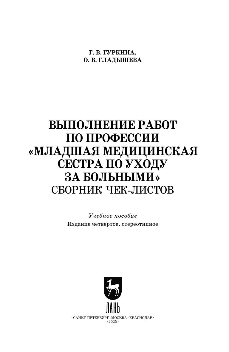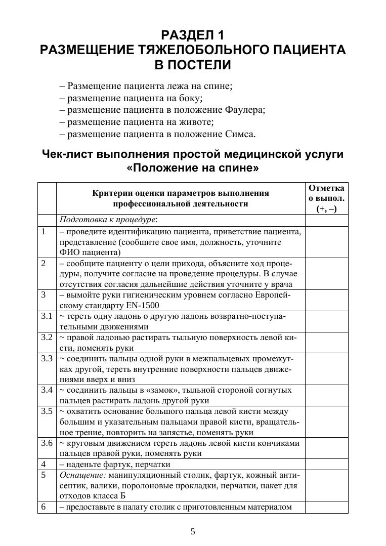 Выполнение работ по профессии «Младшая медицинская сестра по уходу за больными». Сборник чек-листов