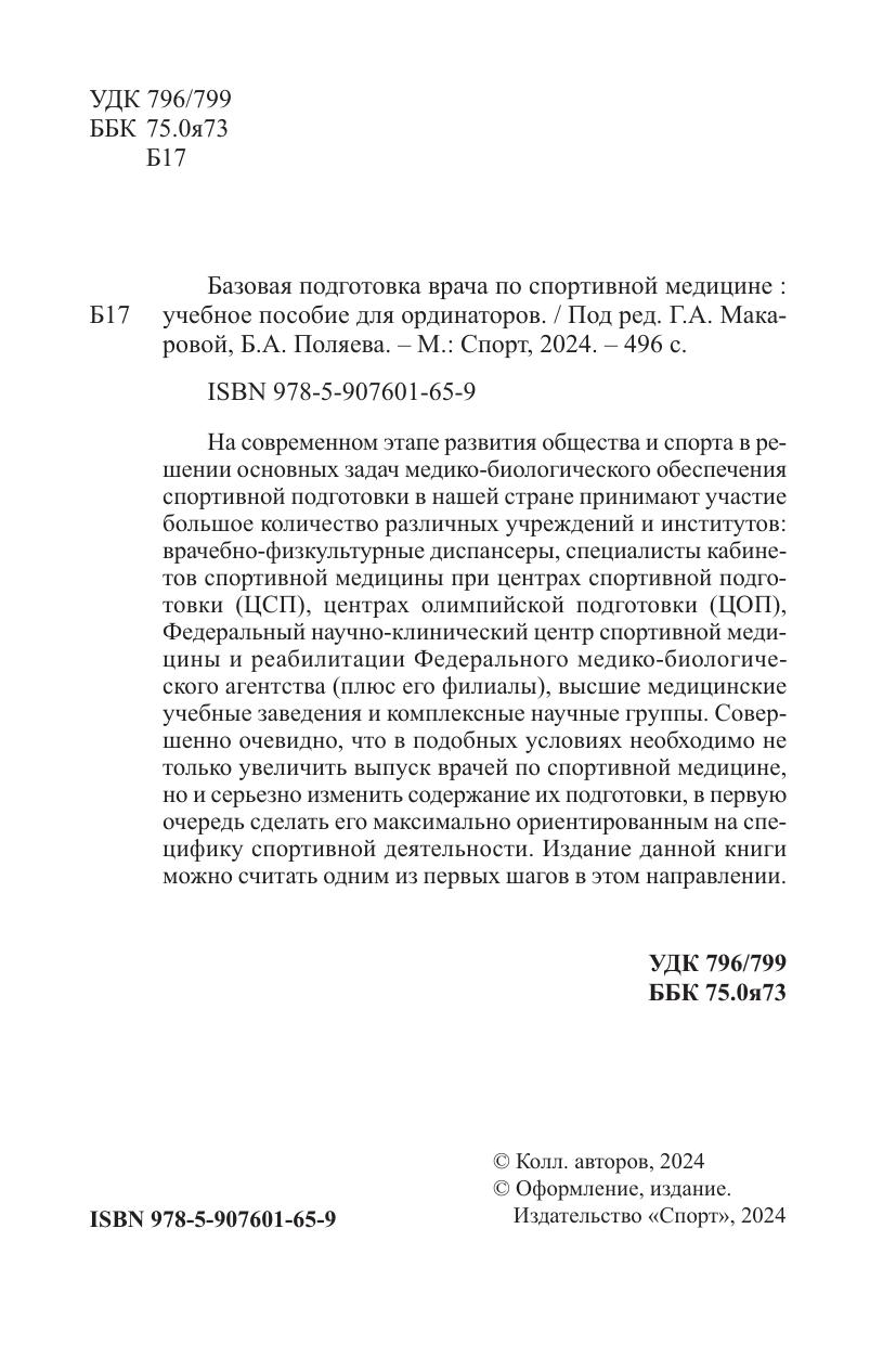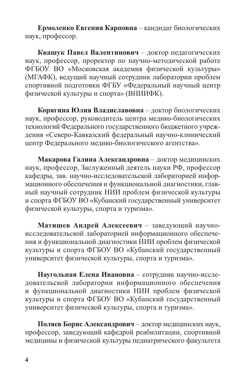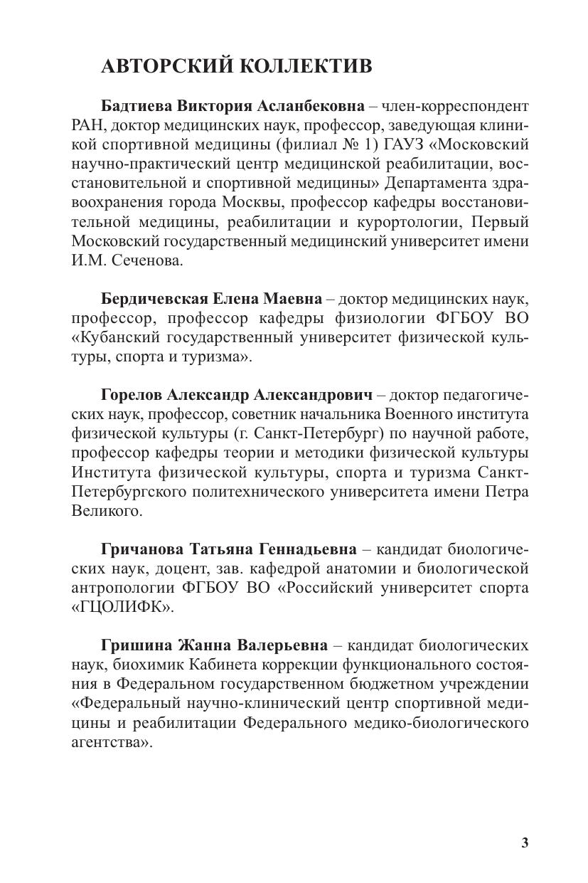На современном этапе развития общества и спорта в решении основных задач медико-биологического обеспечения спортивной подготовки в нашей стране принимают участие большое количество различных учреждений и институтов: врачебно-физкультурные диспансеры, специалисты кабинетов спортивной медицины при центрах спортивной подготовки (ЦСП), центрах олимпийской подготовки (ЦОП), Федеральный научно-клинический центр спортивной медицины и реабилитации Федерального медико-биологического агентства (плюс его филиалы), высшие медицинские учебные заведения и комплексные научные группы. Совершенно очевидно, что в подобных условиях необходимо не только увеличить выпуск врачей по спортивной медицине, но и серьезно изменить содержание их подготовки, в первую очередь сделать его максимально ориентированным на специфику спортивной деятельности. Издание данной книги можно считать одним из первых шагов в этом направлении.