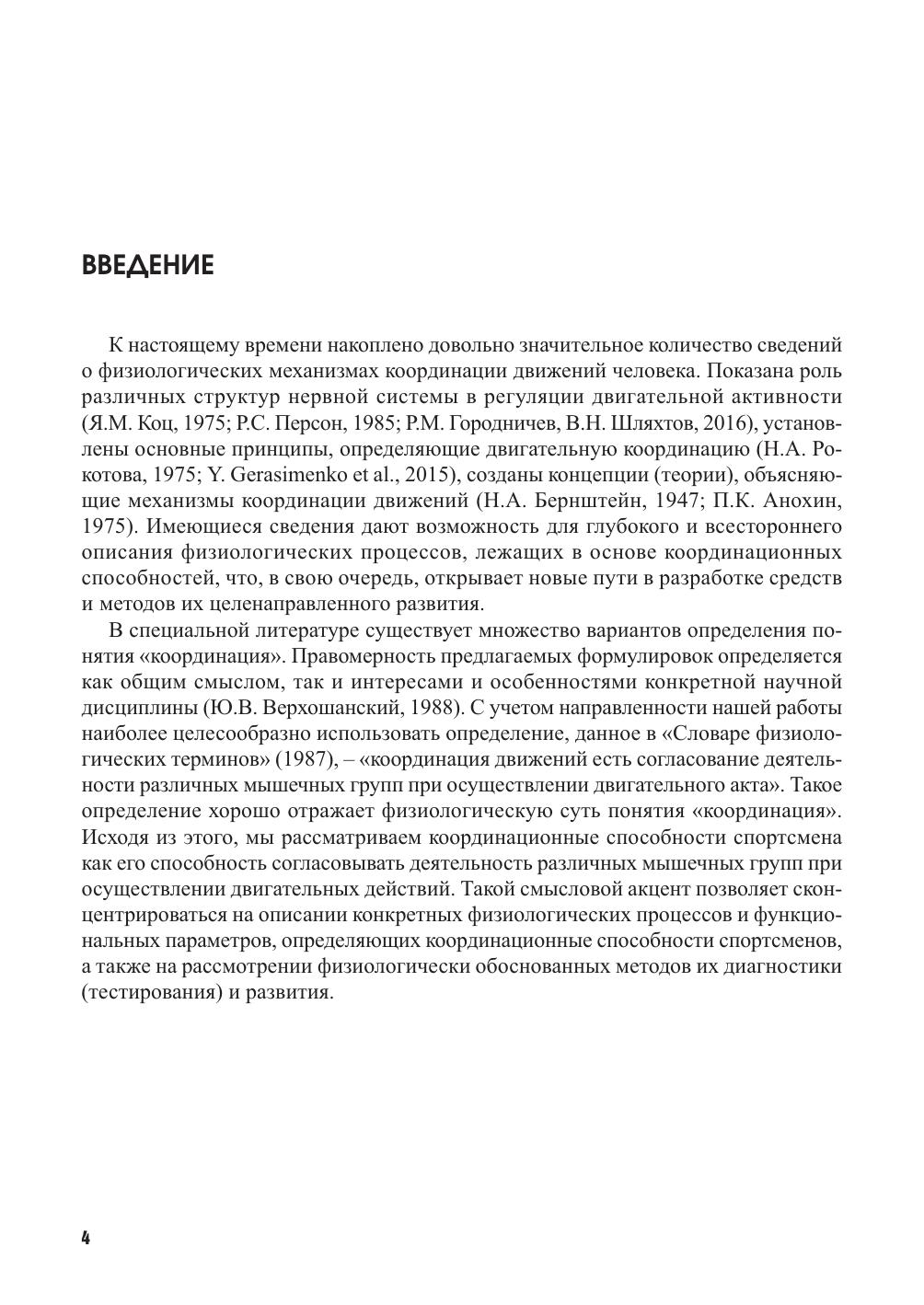 В монографии изложены современные представления о физиологических механизмах, лежащих в основе координационных способностей человека. Раскрываются сведения о тестировании различных видов координационных способностей спортсменов, средствах и методах их развития. Авторы предлагают новые нетрадиционные методы повышения координационных способностей человека. Монография предназначена для специалистов по физиологии, спортивной медицине, биомеханике, теории и методике спортивной тренировки; для студентов, обучающихся по направлениям подготовки 49.04.01 – Физическая культура, 49.04.02 – Физическая культура для лиц с отклонениями в состоянии здоровья (адаптивная физическая культура), 49.04.03 – Спорт; для аспирантов направлений подготовки 06.06.01 – Биологические науки и 49.06.01 – Физическая культура и спорт.