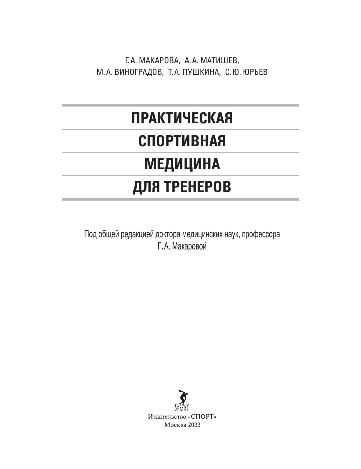 ского персонала, сопровождающего спортивную подготовку на всех ее этапах. Первым шагом в этом направлении является четкое обозначение совместных задач и доступные при различном уровне диагностической оснащенности пути их решения. Этому и посвящена настоящая