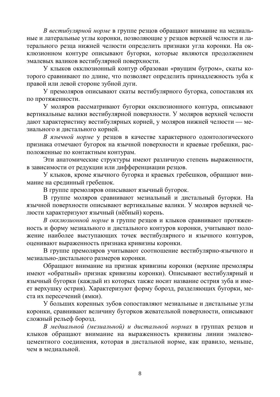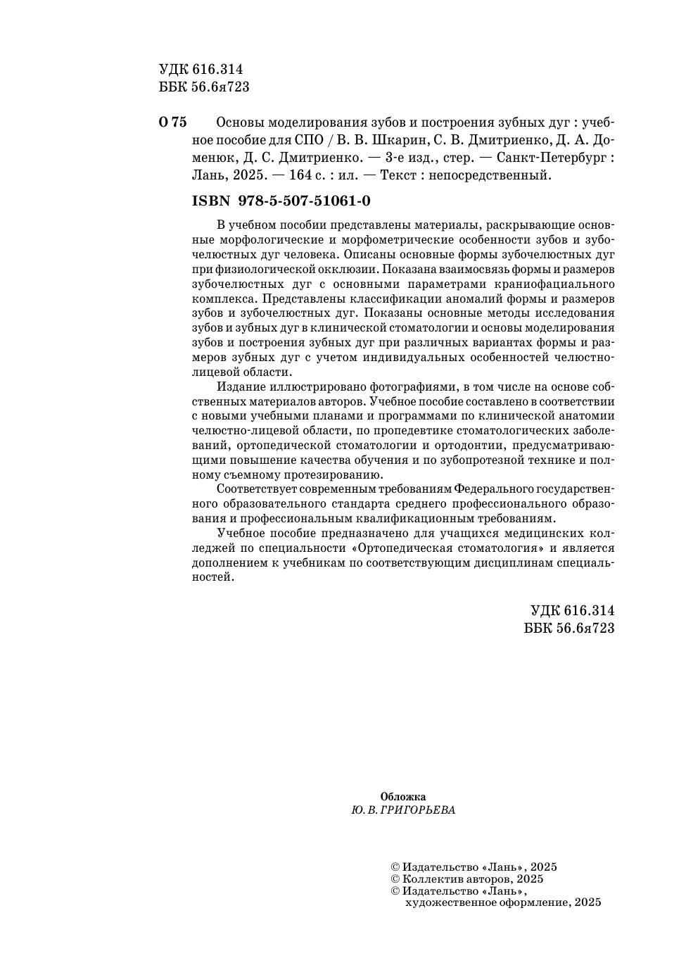 В учебном пособии представлены материалы, раскрывающие основные морфологические и морфометрические особенности зубов и зубочелюстных дуг человека. Описаны основные формы зубочелюстных дуг при физиологической окклюзии. Показана взаимосвязь формы и размеров зубочелюстных дуг с основными параметрами кранио-фациального комплекса. Представлены классификации аномалий формы и размеров зубов и зубочелюстных дуг. Показаны основные методы исследования зубов и зубных дуг в клинической стоматологии и основы моделирования зубов и построения зубных дуг при различных вариантах формы и размеров зубных дуг с учетом индивидуальных особенностей челюстно-лицевой области. Издание иллюстрировано фотографиями, в том числе на основе собственных материалов. Учебное пособие составлено в соответствии с новыми учебными планами и программами по клинической анатомии челюстно-лицевой области, по пропедевтике стоматологических заболеваний, ортопедической стоматологии и ортодонтии (для студентов стоматологических факультетов вузов), предусматривающими повышение качества обучения и по зубопротезной технике и полному съёмному протезированию (для медицинских колледжей), Соответствует современным требованиям Федерального государственного образовательного стандарта среднего профессионального образования и профессиональным квалификационным требованиям. Учебное пособие предназначено для самостоятельного изучения основ моделирования зубов и зубных дуг для студентов стоматологических факультетов и клинических ординаторов, обучающихся по специальностям «Стоматология ортопедическая» и «Ортодонтия» а также для учащихся медицинских колледжей по специальности ортопедическая стоматология, и является дополнением к учебникам по соответствующим дисциплинам специальностей.