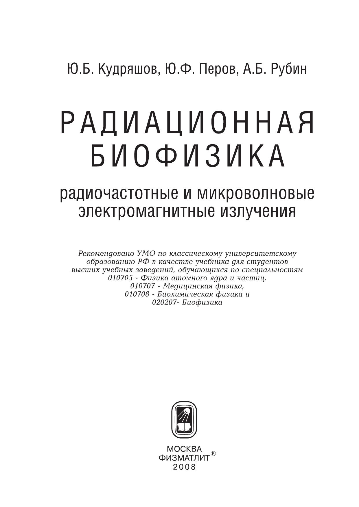 Авторы: Кудряшов Ю.Б., Перов Ю.Ф., Рубин А.Б.