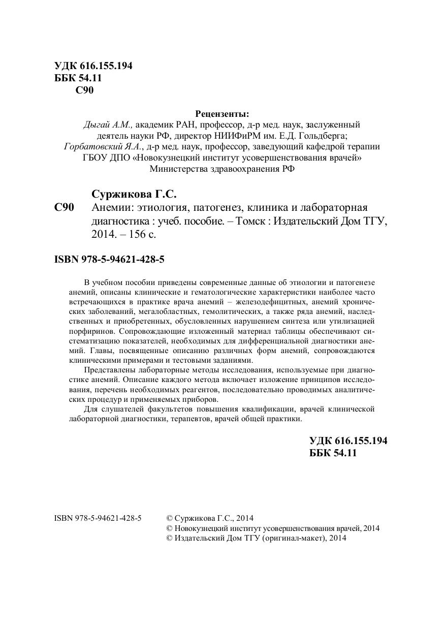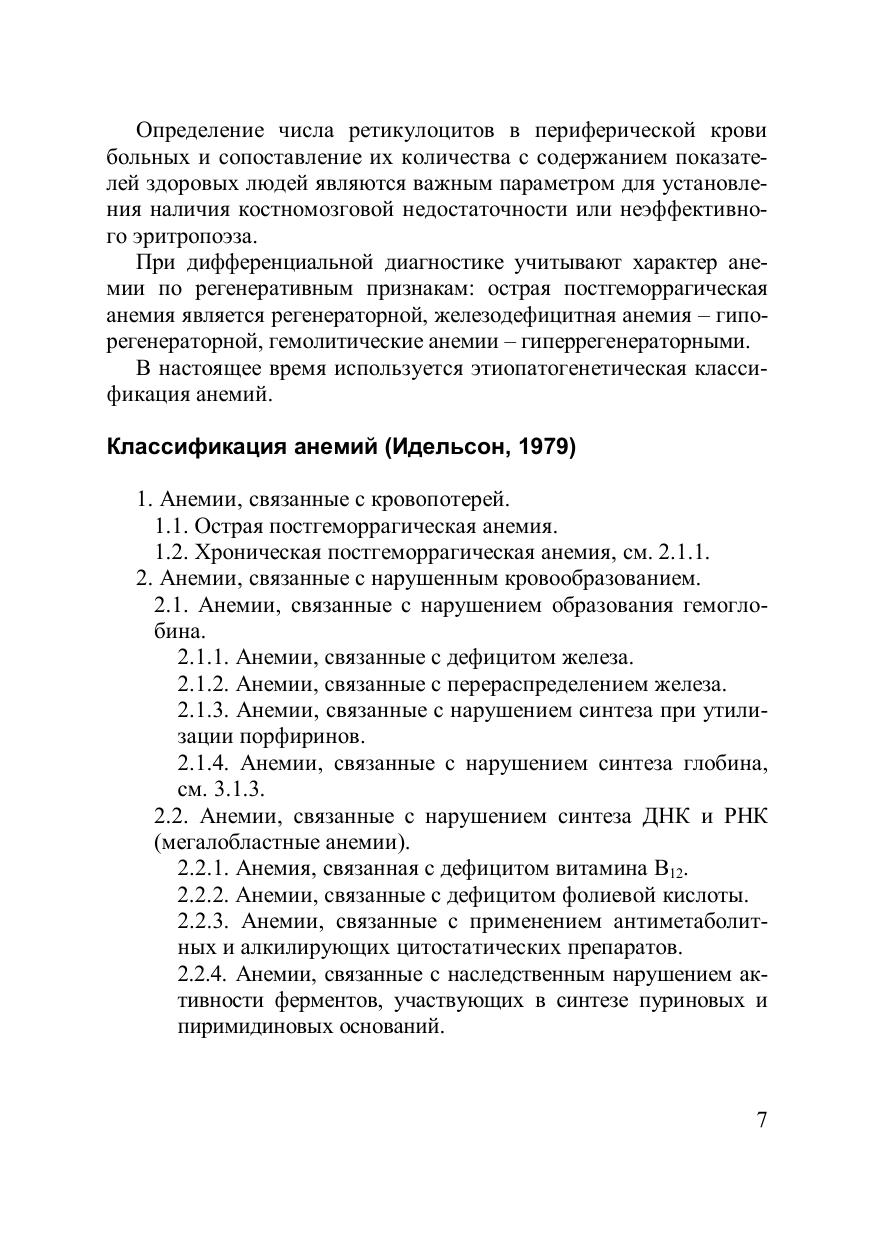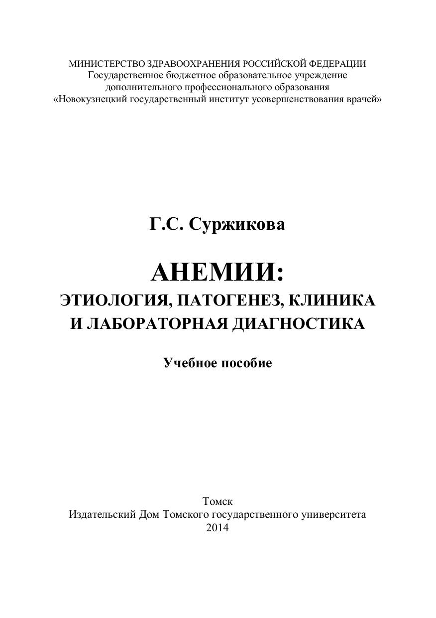 В учебном пособии приведены современные данные об этиологии и патогенезе анемий, описаны клинические и гематологические характеристики наиболее часто встречающихся в практике врача анемий – железодефицитных, анемий хронических заболеваний, мегалобластных, гемолитических, а также ряда анемий, наследственных и приобретенных, обусловленных нарушением синтеза или утилизацией порфиринов. Сопровождающие изложенный материал таблицы обеспечивают систематизацию показателей, необходимых для дифференциальной диагностики анемий. Главы, посвященные описанию различных форм анемий, сопровождаются клиническими примерами и тестовыми заданиями. Представлены лабораторные методы исследования, используемые при диагностике анемий. Описание каждого метода включает изложение принципов исследования, перечень необходимых реагентов, последовательно проводимых аналитических процедур и применяемых приборов. Для слушателей факультетов повышения квалификации, врачей клинической лабораторной диагностики, терапевтов, врачей общей практики.