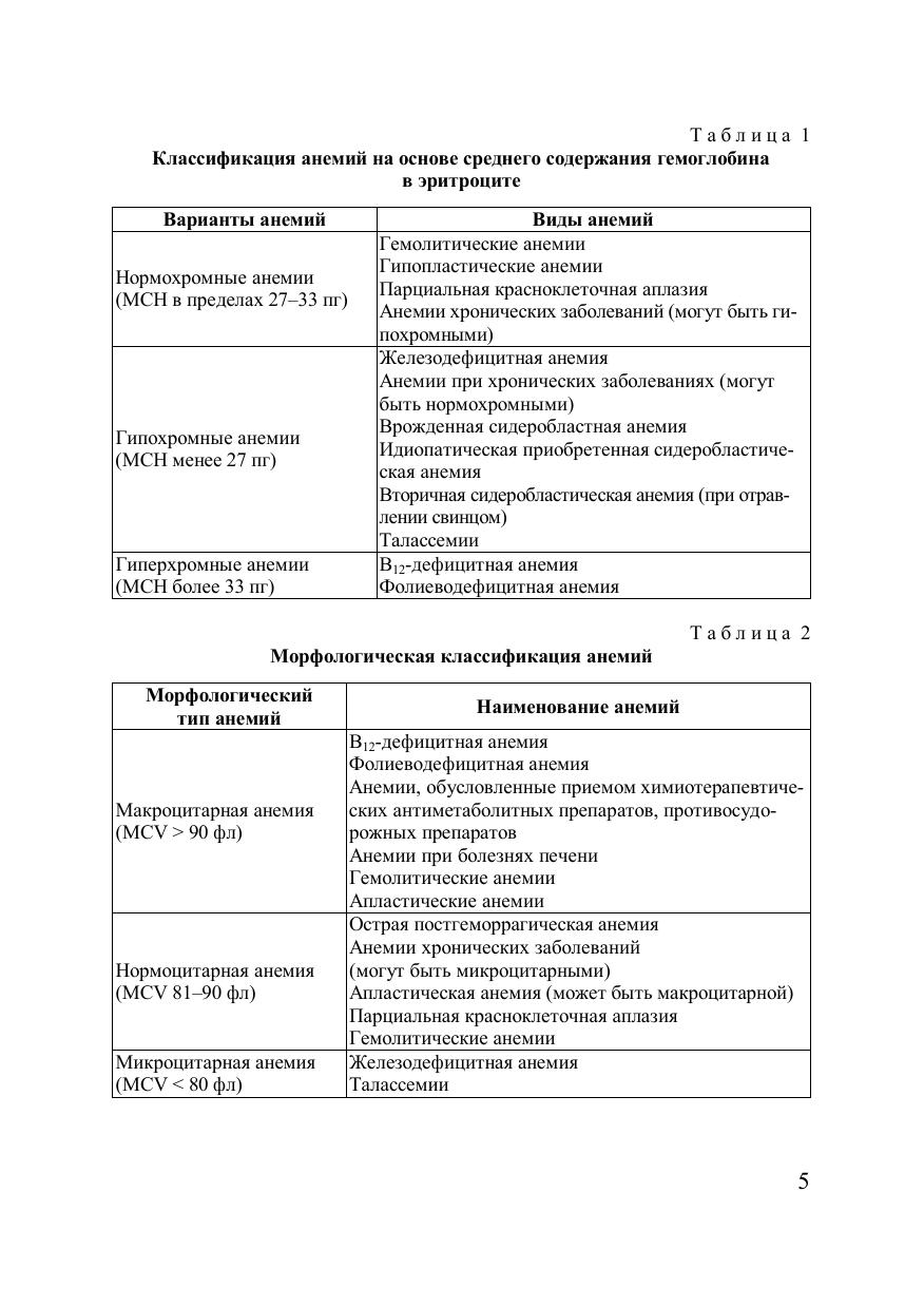 Анемии: этиология, патогенез, клиника и лабораторная диагностика