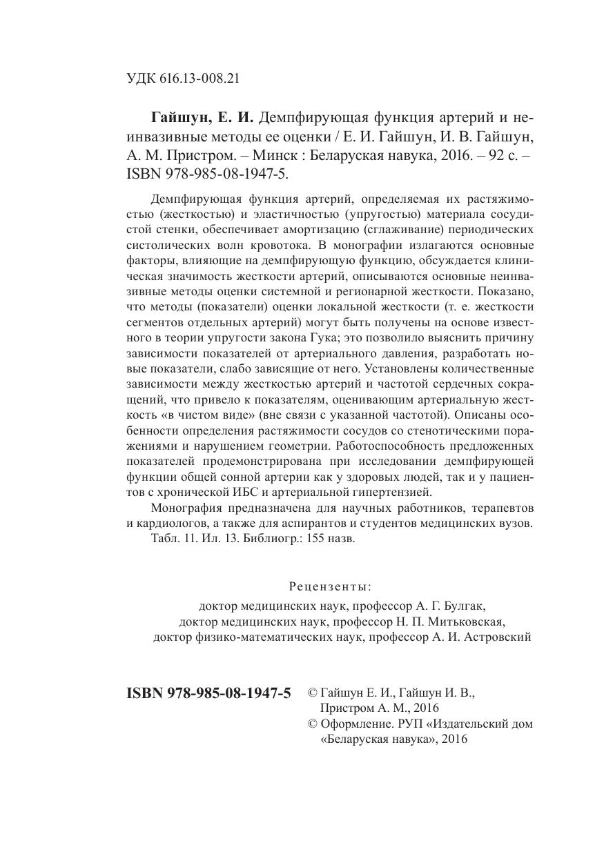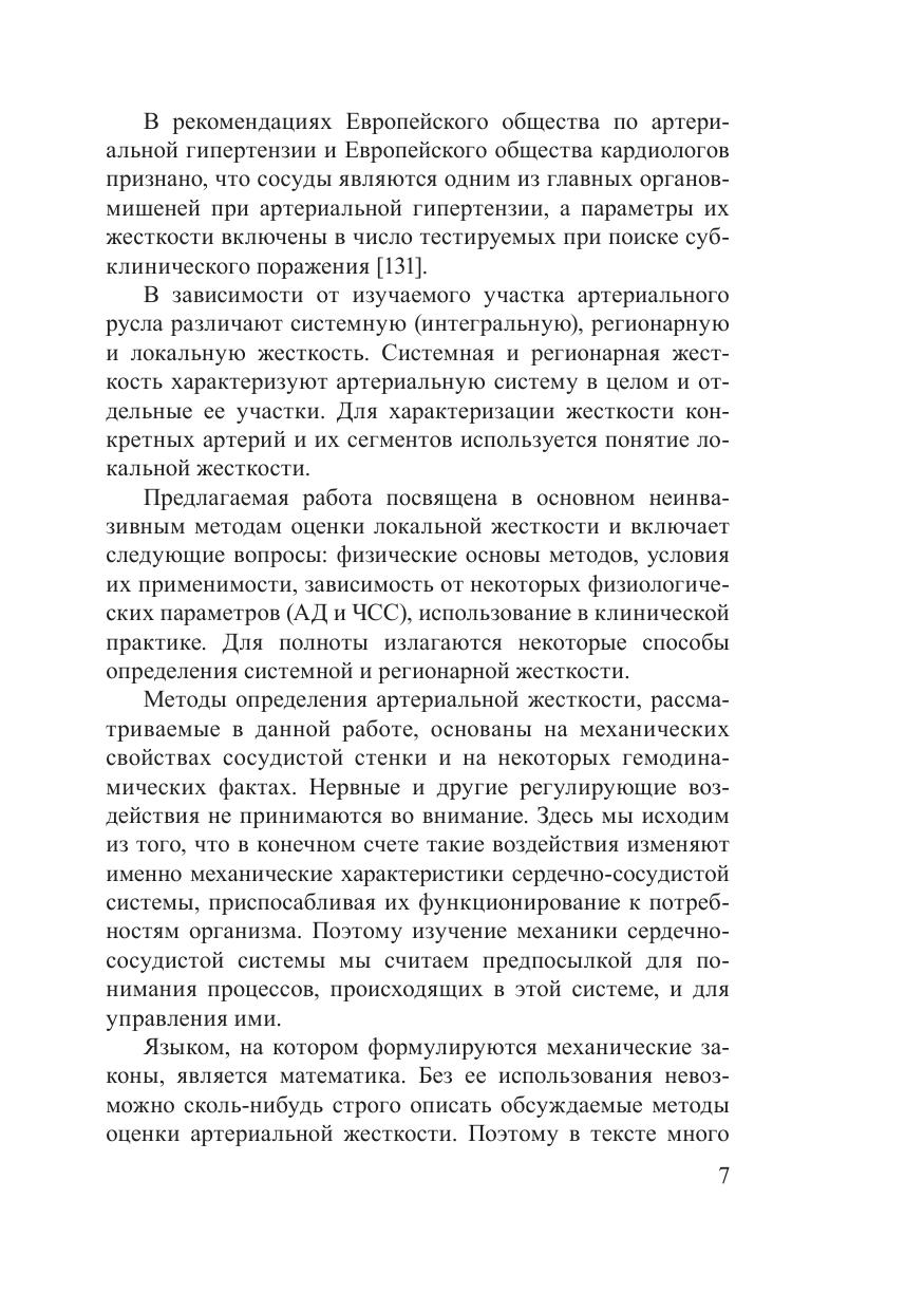 Демпфирующая функция артерий, определяемая их растяжимостью (жесткостью) и эластичностью (упругостью) материала сосудистой стенки, обеспечивает амортизацию (сглаживание) периодических систолических волн кровотока. В монографии излагаются основные факторы, влияющие на демпфирующую функцию, обсуждается клиническая значимость жесткости артерий, описываются основные неинвазивные методы оценки системной и регионарной жесткости. Показано, что методы (показатели) оценки локальной жесткости (т. е. жесткости сегментов отдельных артерий) могут быть получены на основе известного в теории упругости закона Гука, это позволило выяснить причину зависимости показателей от артериального давления, разработать новые показатели, слабо зависящие от него. Установлены количественные зависимости между жесткостью артерий и частотой сердечных сокращений, что привело к показателям, оценивающим артериальную жесткость «в чистом виде» (вне связи с указанной частотой). Описаны особенности определения растяжимости сосудов со стенотическими поражениями и нарушением геометрии. Работоспособность предложенных показателей продемонстрирована при исследовании демпфирующей функции общей сонной артерии как у здоровых людей, так и у пациентов с хронической ИБС и артериальной гипертензией. Монография предназначена для научных работников, терапевтов и кардиологов, а также для аспирантов и студентов медицинских вузов.
