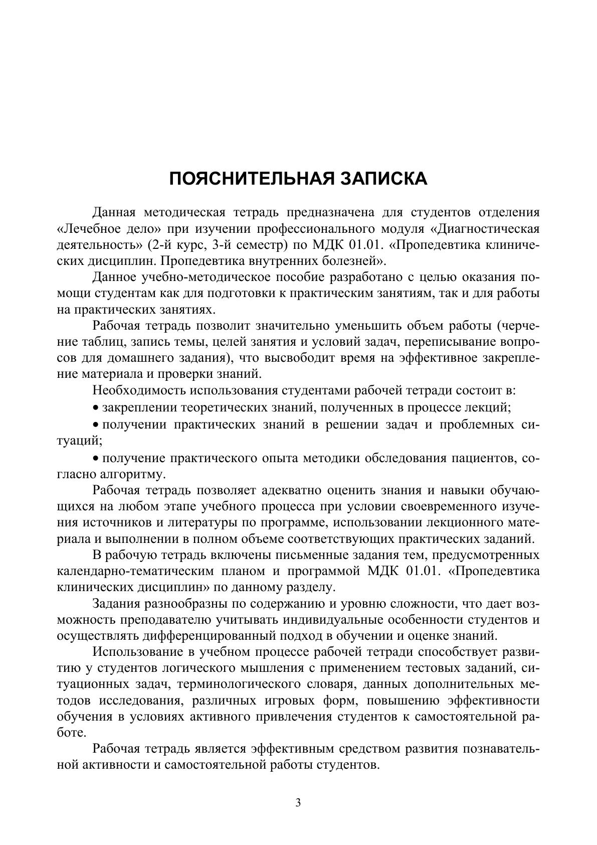 Рабочая тетрадь представляет собой учебное пособие для аудиторной самостоятельной работы студентов. Пособие разработано в соответствии с Федеральным государственным образовательным стандартом по специальности «Лечебное дело», углубленный уровень подготовки среднего профессионального образования.