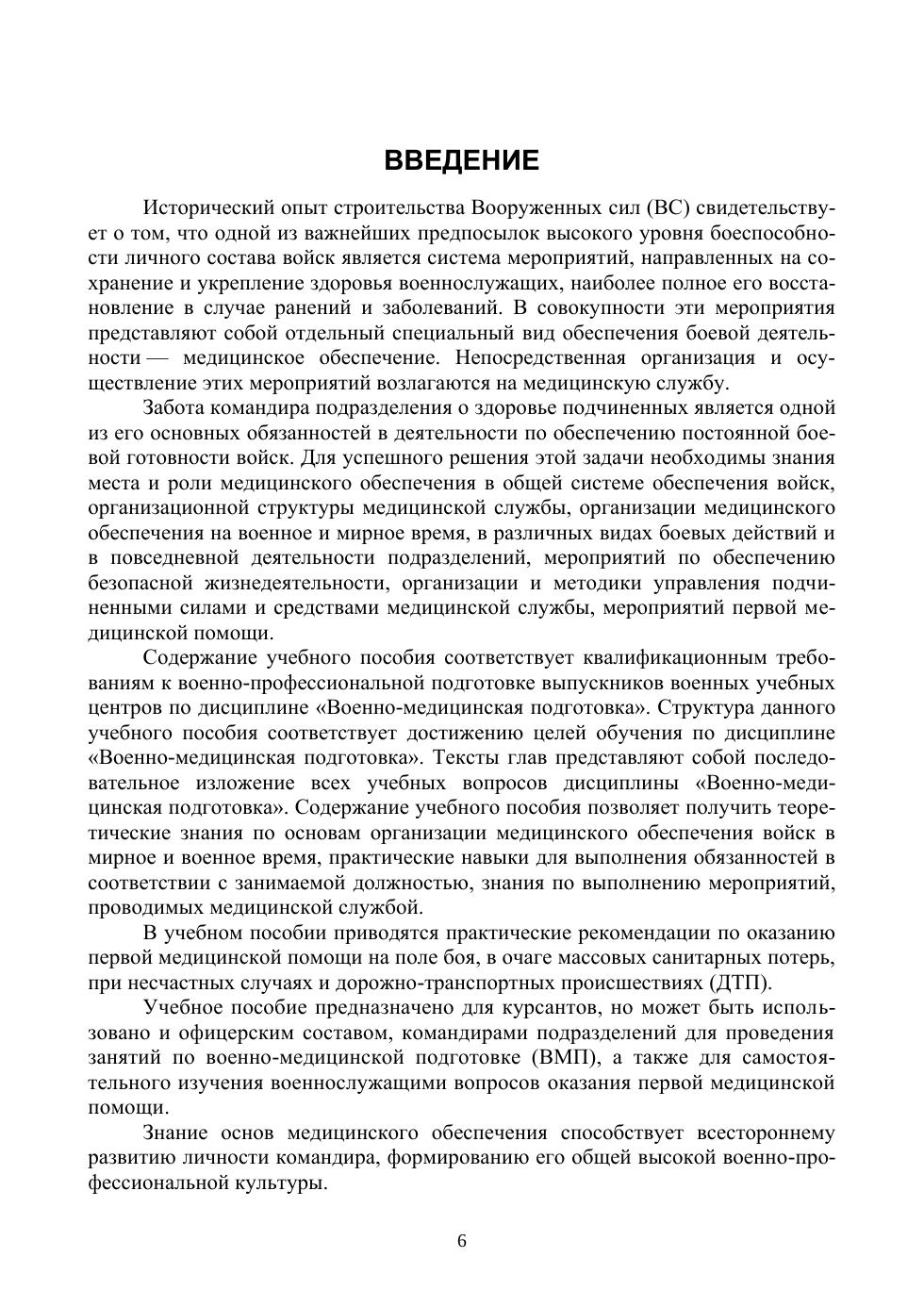 В пособии изложены необходимые сведения об организации военно-медицинской подготовки подразделений в мирное и военное время, организационные основы военной медицины, рассматриваются мероприятия по сохранению здоровья военнослужащих, организации и пропаганды здорового образа жизни. Освещены вопросы оказания первой медицинской помощи на поле боя, в очаге массовых санитарных потерь при несчастных случаях и дорожно-транспортных происшествиях. Соответствует современным требованиям Федерального государственного образовательного стандарта среднего профессионального образования и профессиональным квалификационным требованиям.
