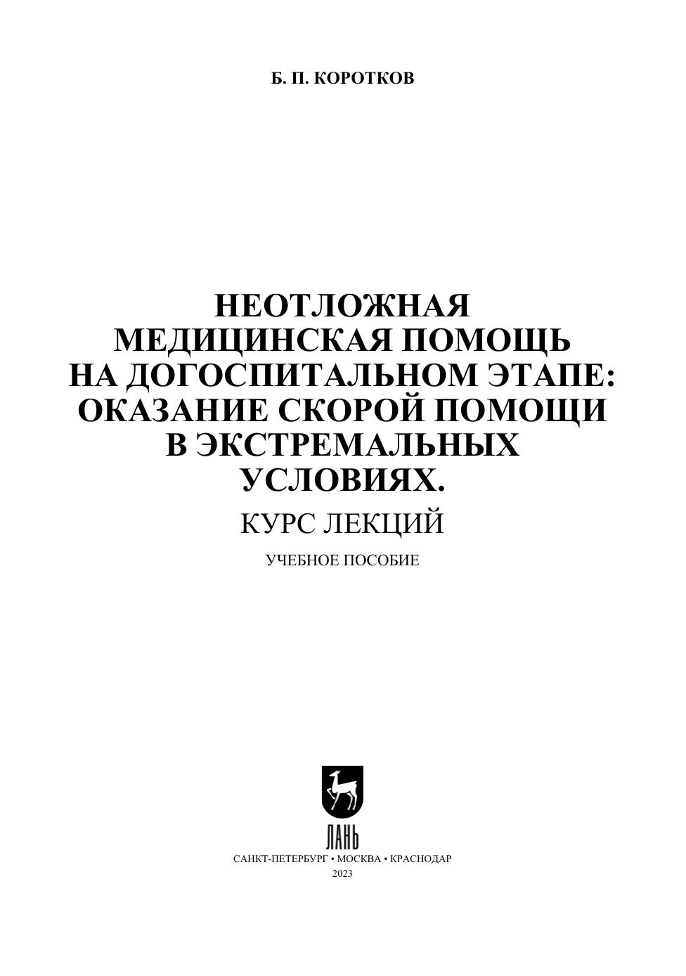 Учебное пособие разработано с целью обучения студентов и спасателей в Единой системе подготовки в области защиты от чрезвычайных ситуаций природного и техногенного характера, научить студентов и спасателей грамотно оценивать медико-тактические характеристики чрезвычайных ситуаций и оказывать медицинскую помощь пострадавшим в них. В пособии рассмотрены медицинские последствия как чрезвычайных ситуаций, так и бытового травматизма различного происхождения, описаны алгоритмы неотложной медицинской помощи. Разработано в соответствии с Федеральным государственным образовательным стандартом среднего профессионального образования в РФ, утвержденным приказом Министерства просвещения РФ от 4 июля 2022 г. № 526, 527, соответствует уровню подготовки специалистов в средних медицинских учебных заведениях по неотложной медицине в экстремальных условиях.