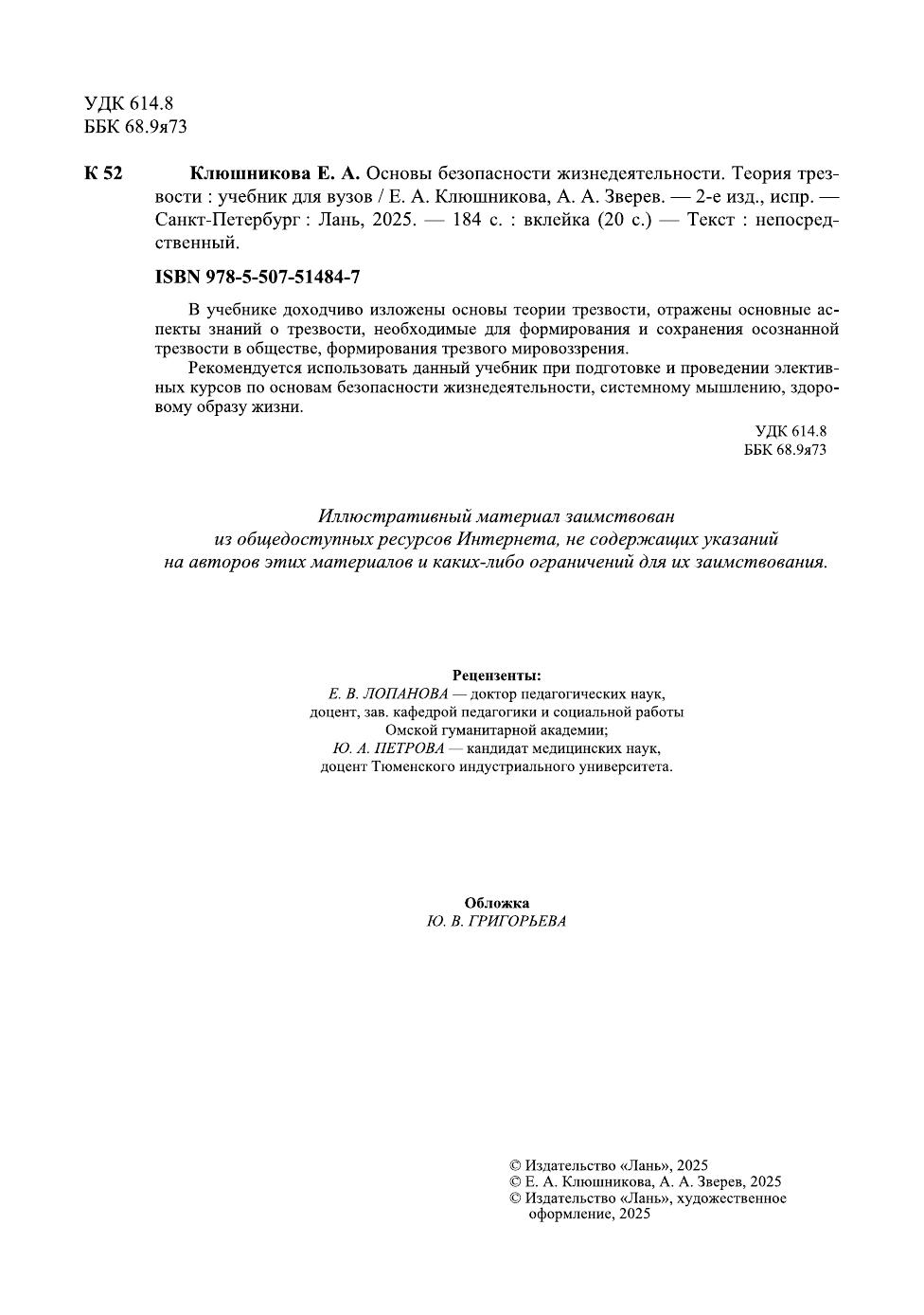 Основы безопасности жизнедеятельности. Теория трезвости Клюшникова Е. А., Зверев А. А.