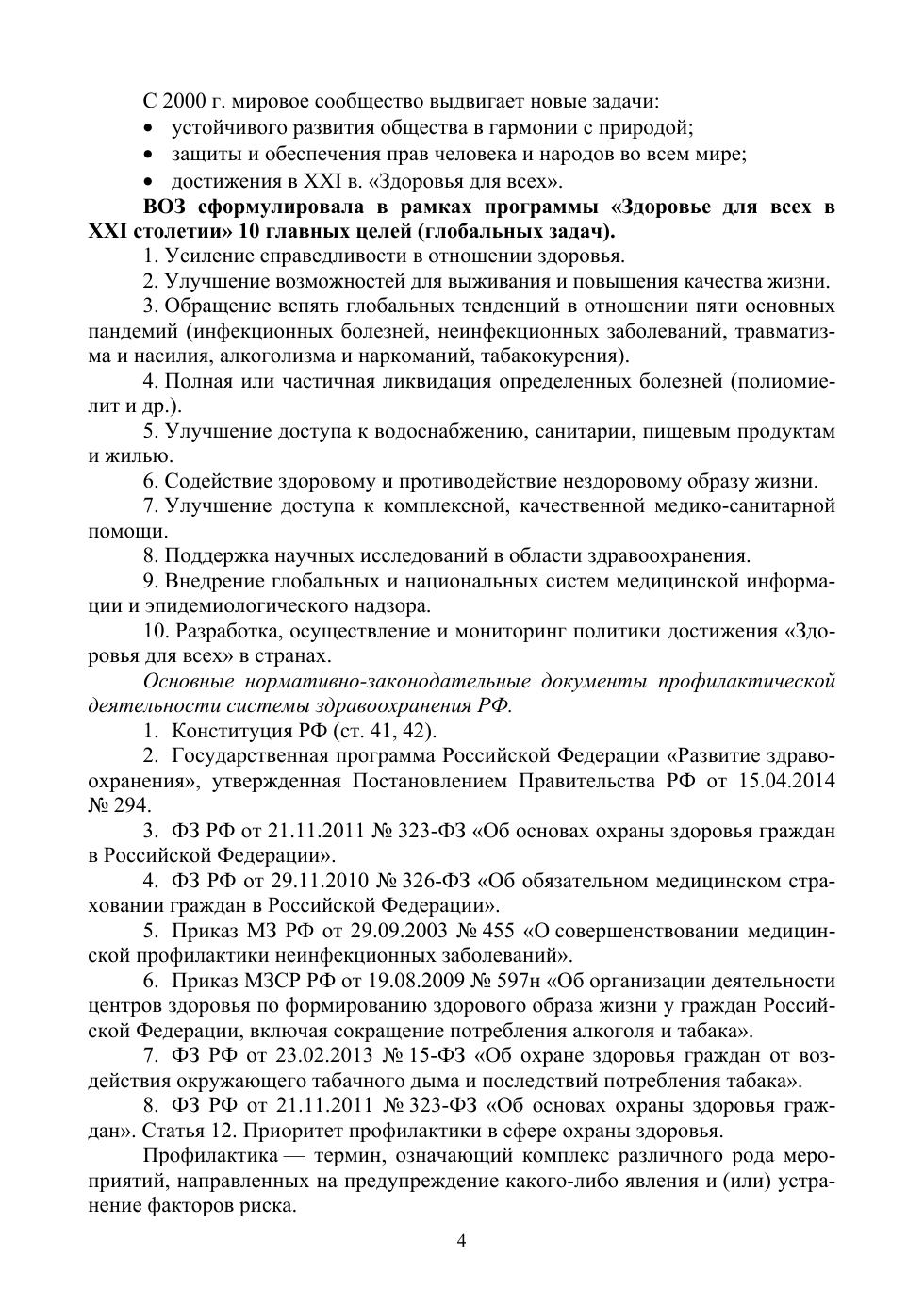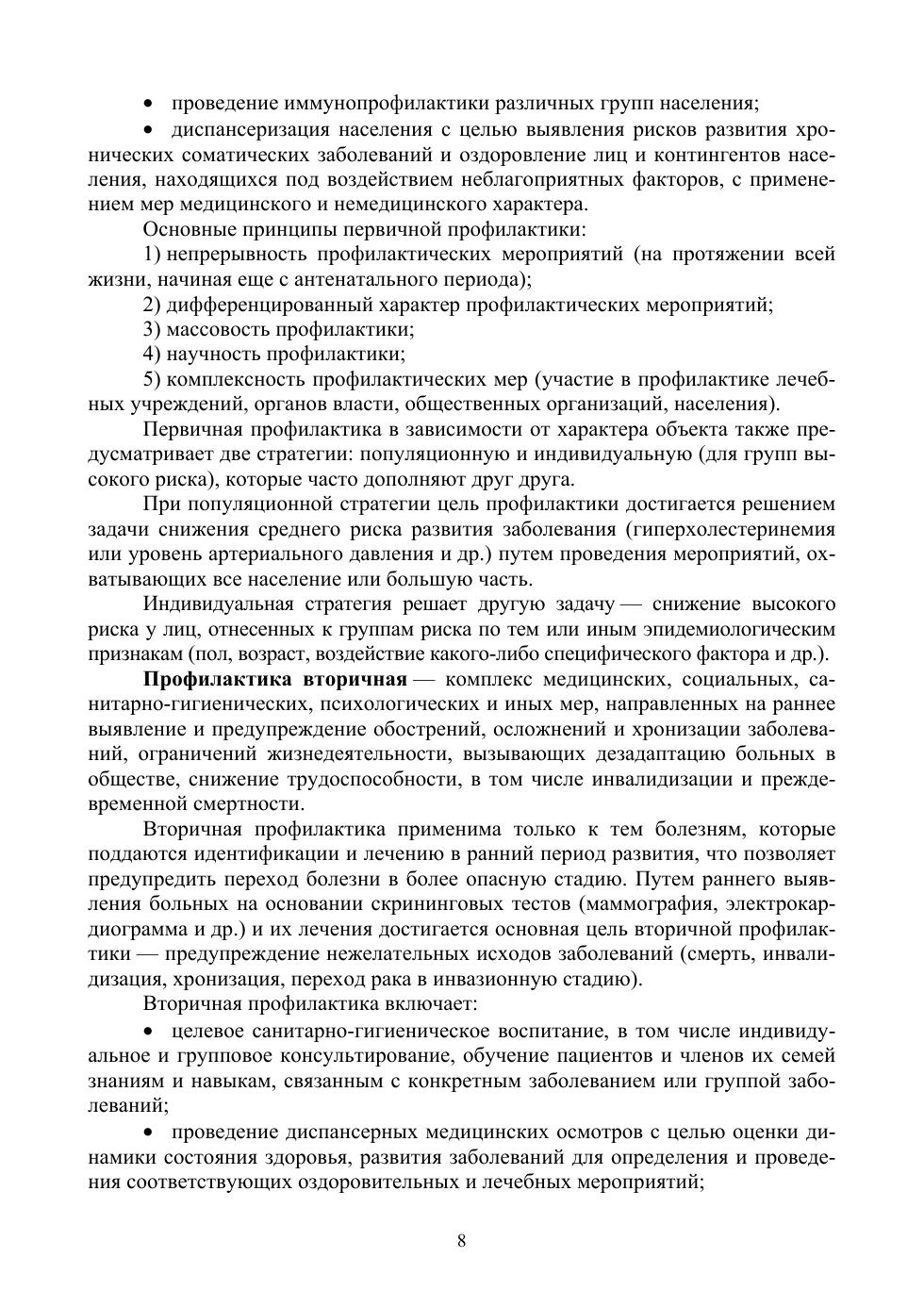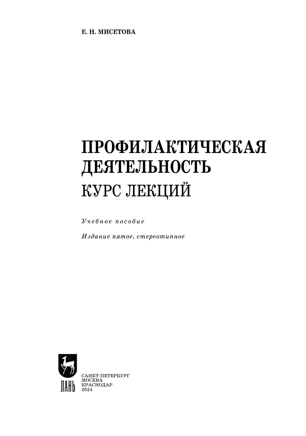 В курсе лекций изложены основные вопросы формирования здорового образа жизни, цели и задачи гигиенического обучения и воспитания населения в медицинских организациях, приведены причины, факторы риска развития различных заболеваний, представлены принципы организации диспансеризации и профилактических осмотров у населения разных возрастных групп и профессий, определена роль средних медицинских работников в медицинской профилактике. Материал структурирован и содержит обобщенный научный опыт ведущих специалистов в области профилактической медицины. Содержание курса лекций соответствует требованиям примерной программы МДК.04.01 «Профилактика заболеваний и санитарно-гигиеническое образование населения» ПМ.04 «Профилактическая деятельность» по специальности «Лечебное дело» (на базе среднего общего образования). Соответствует современным требованиям Федерального государственного образовательного стандарта среднего профессионального образования и профессиональным квалификационным требованиям. Предлагаемый курс лекций предназначен для студентов и преподавателей средних специальных медицинских учебных заведений, слушателей факультетов последипломного образования, средних медицинских работников.