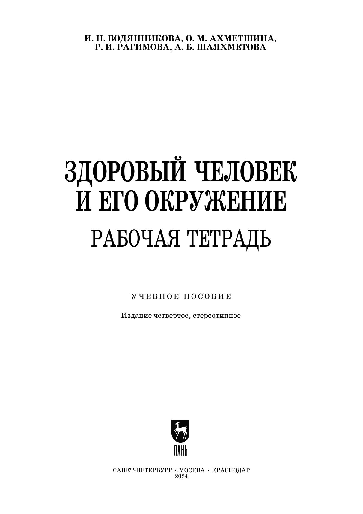 Здоровый человек и его окружение. Рабочая тетрадь