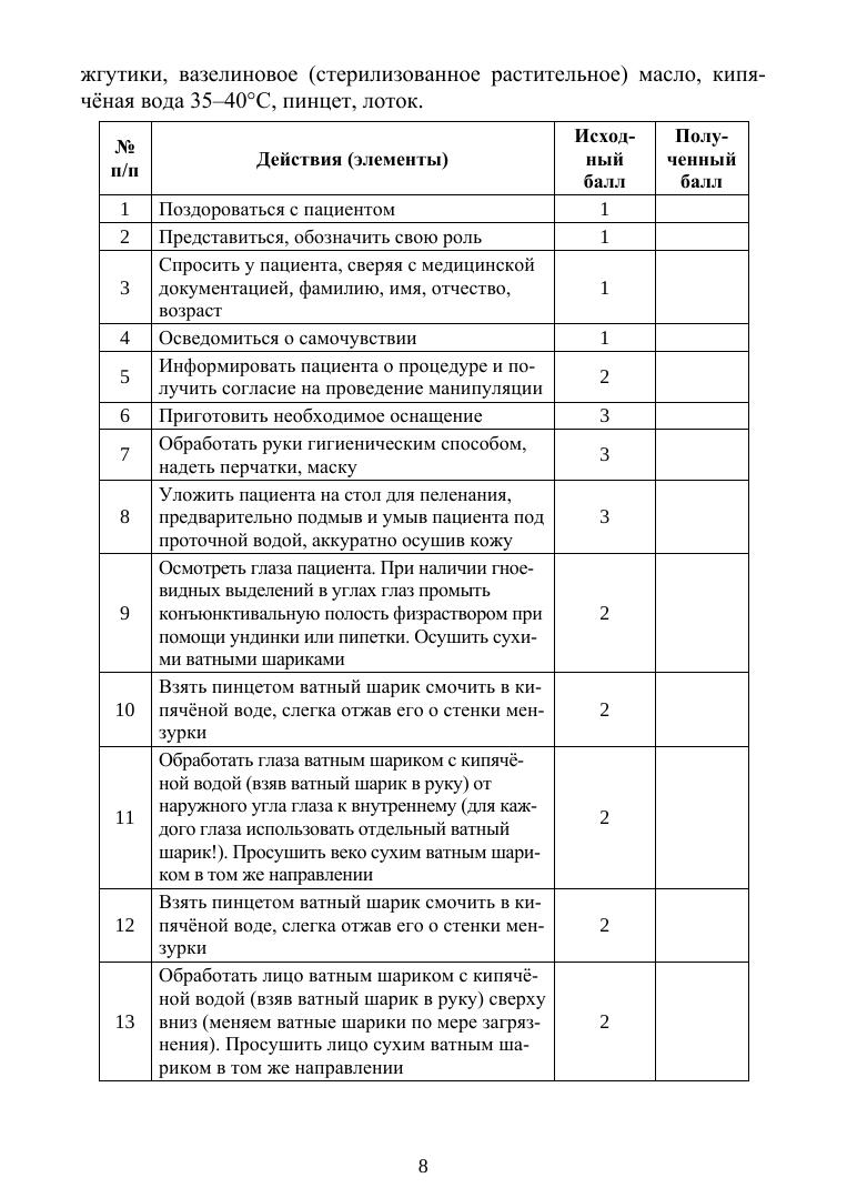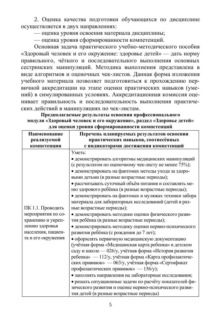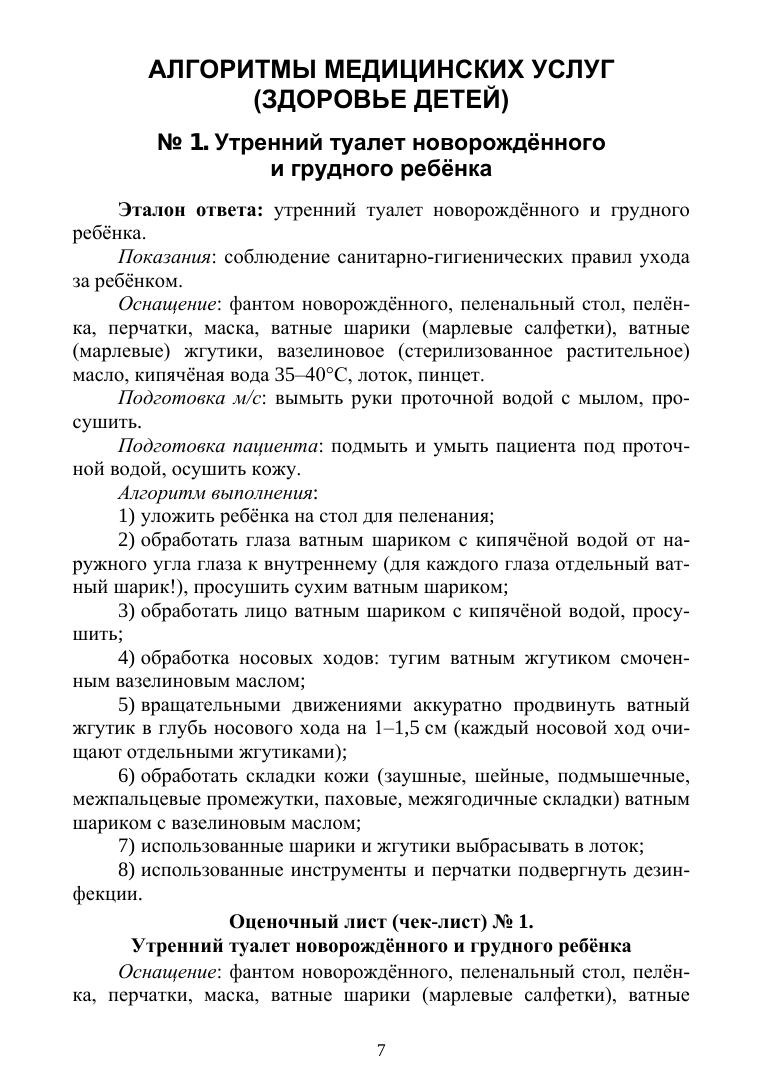 В учебном пособии описаны алгоритмы манипуляций медицинских услуг, оказываемых медицинской сестрой в уходе за детьми, а также оценочные листы для контроля выполнения студентами надлежащих манипуляций. Практикум относится к профессиональному модулю «Проведение профилактических мероприятий» раздел «Здоровье детей» и является частью программы подготовки специалистов среднего звена в соответствии с ФГОС по специальности СПО «Сестринское дело».