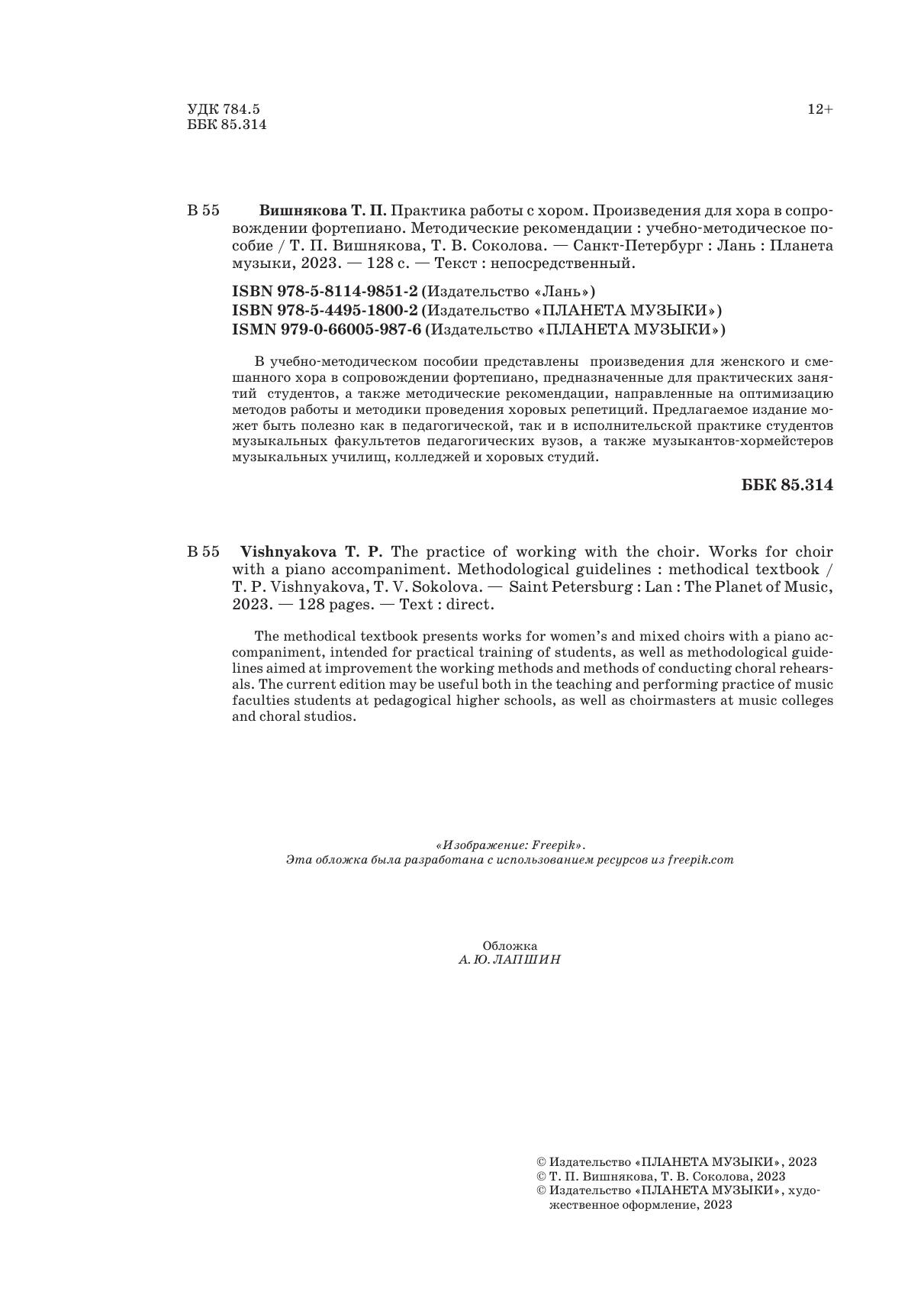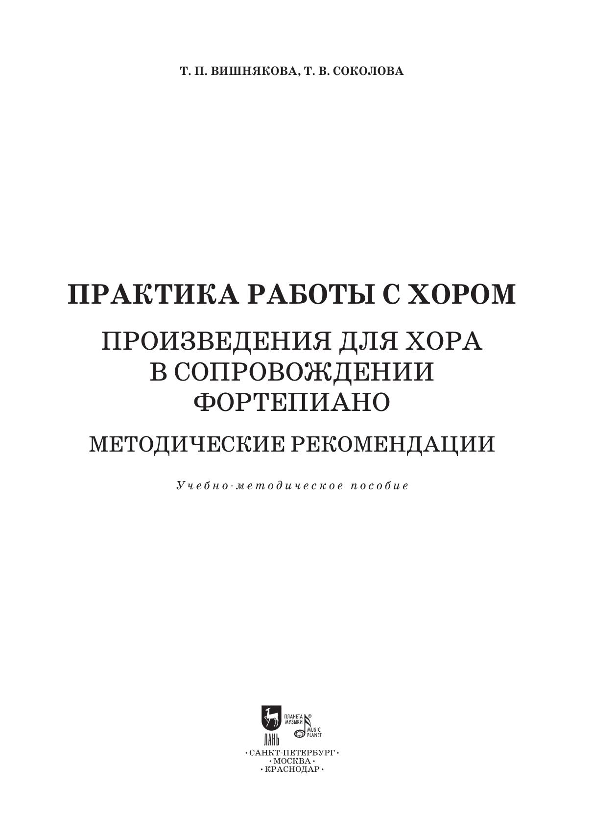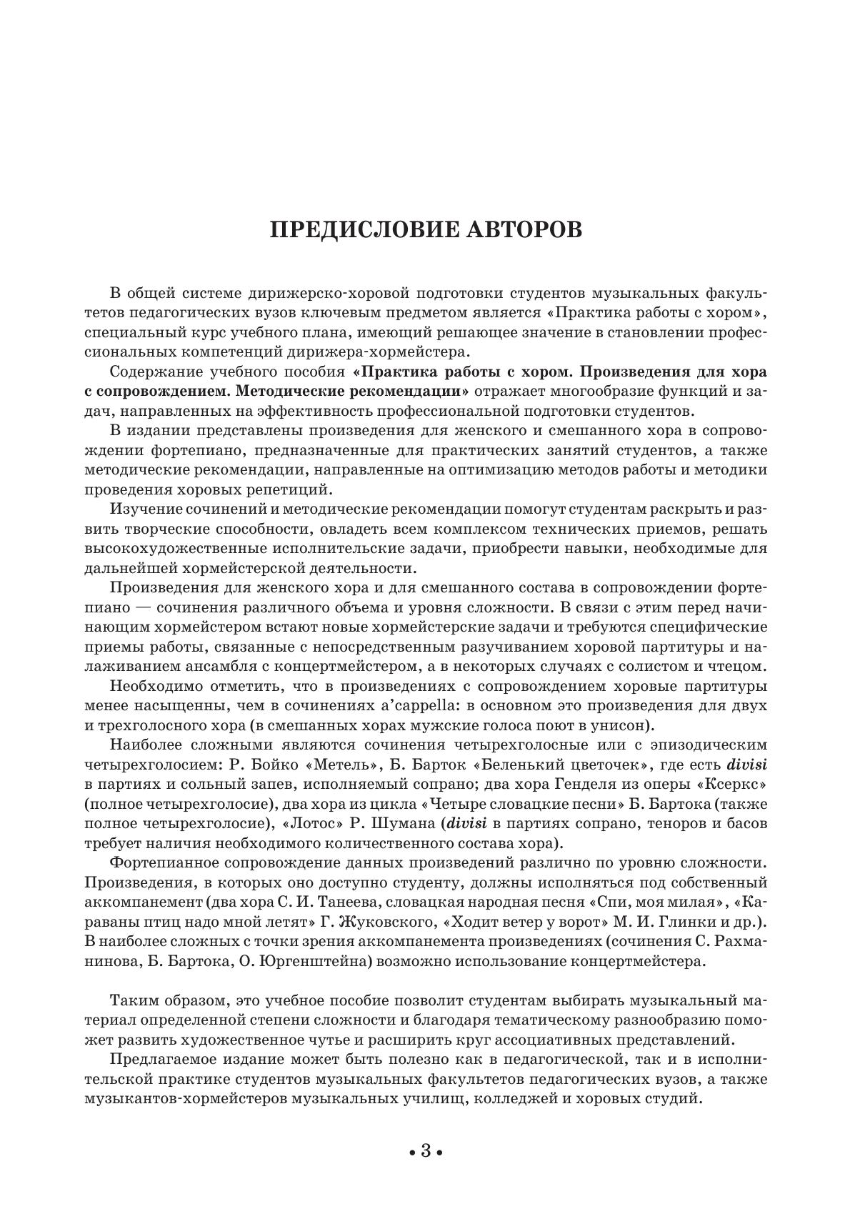 В учебно-методическом пособии представлены произведения для женского и смешанного хора в сопровождении фортепиано, предназначенные для практических занятий студентов, а также методические рекомендации, направленные на оптимизацию методов работы и методики проведения хоровых репетиций. Предлагаемое издание может быть полезно как в педагогической, так и в исполнительской практике студентов музыкальных факультетов педагогических вузов, а также музыкантов-хормейстеров музыкальных училищ, колледжей и хоровых студий.