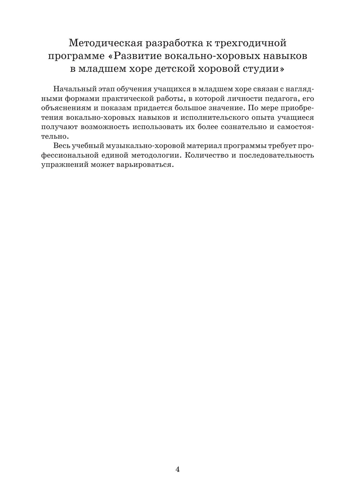 В данной работе подробно освещается разработанная автором методика освоения базовых вокально-хоровых навыков в младшем хоре, развитие музыкального слуха, ритма, а также рассматриваются вопросы организации и проведения учебно-репетиционного процесса с учащимися младшего возраста. Материал, предлагаемый в методической разработке, служит основой в обучении детей. При этом его насыщение может быть дополнено упражнениями самих педагогов. Рассчитано на трехгодичное обучение. Предназначено для педагогов дополнительного образования вокально-хорового направления (хор, сольфеджио) ДМШ и ДШИ. This book covers the author’s methodology for mastering basic vocal and choral skills in the junior choir, the training of ear for music, rhythm, and also discusses the organization and conducting of the educational and rehearsal process with younger pupils. The material offered in the current methodological study serves as the basis for teaching children. At the same time, its content may be supplemented by the teachers’ own exercises. It is intended for three years of study. It is intended for teachers of additional education of the vocal and choral departments (choir, solfeggio) at the children’s music schools and children’s schools of arts.