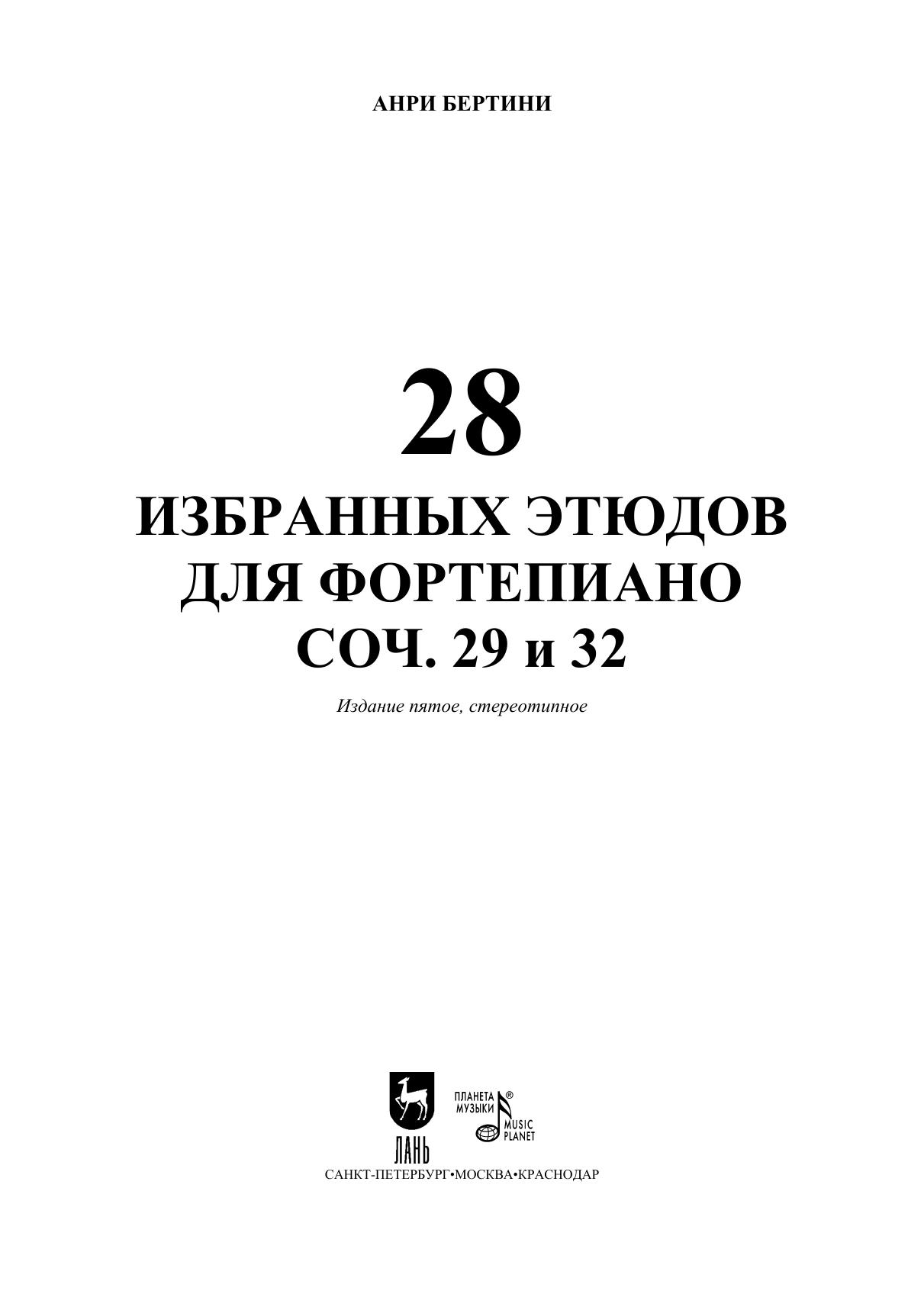28 избранных этюдов для фортепиано. Соч. 29 и 32