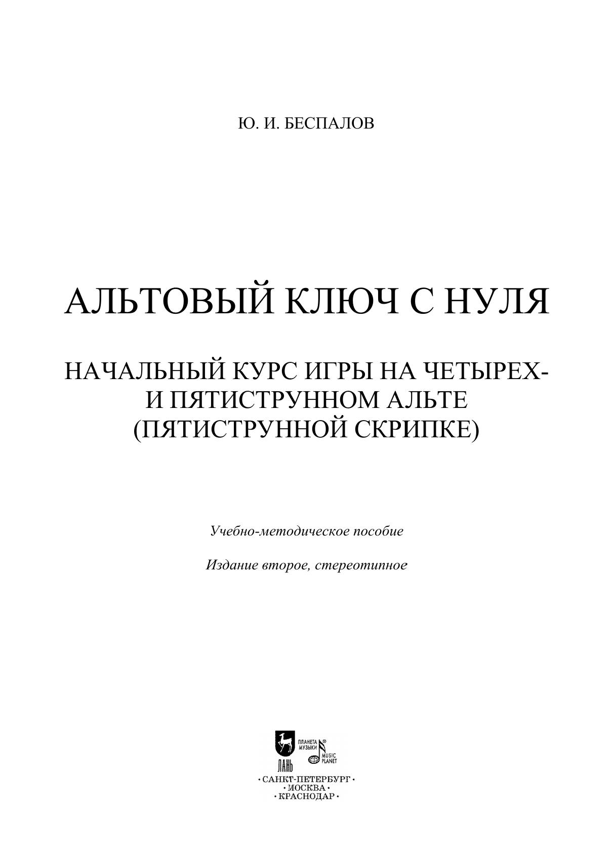 Альтовый ключ с нуля. Начальный курс игры на четырех- и пятиструнном альте (пятиструнной скрипке)