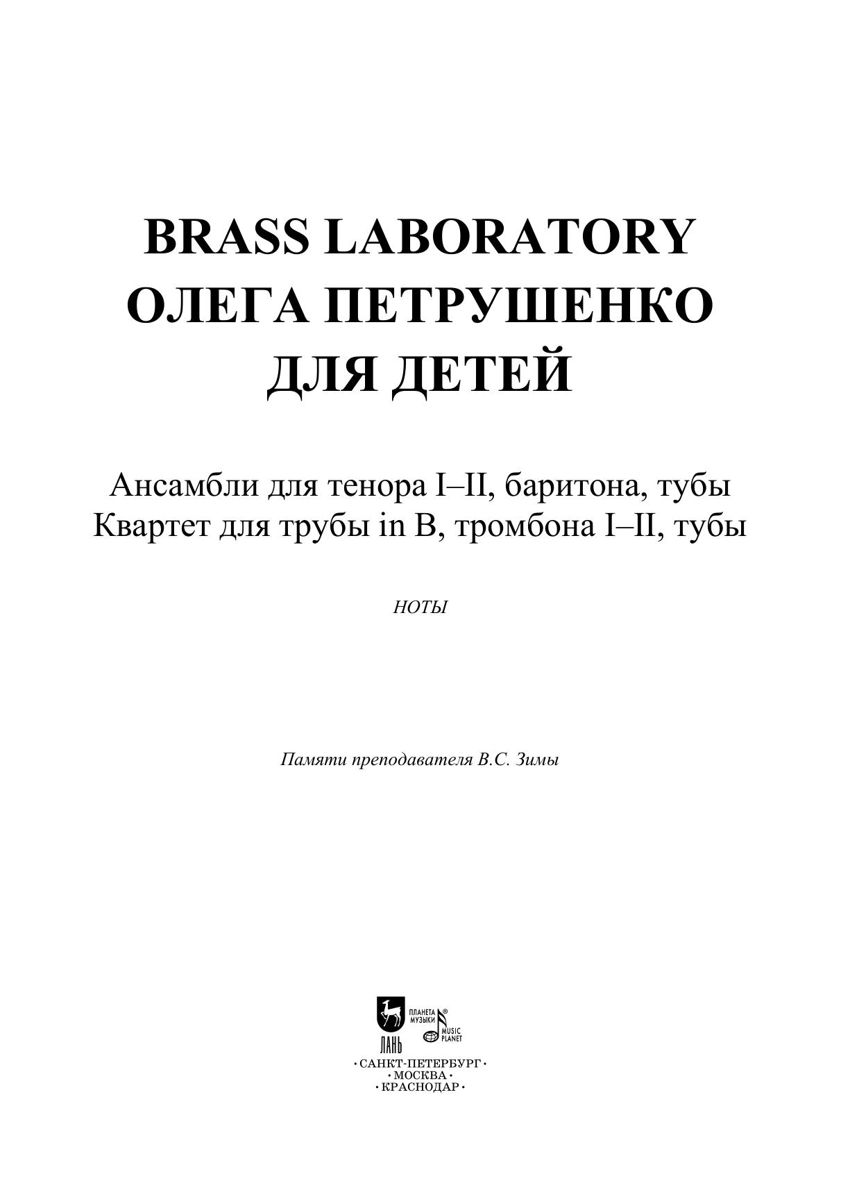 Brass Laboratory Олега Петрушенко для детей. Ансамбли для тенора I–II, баритона, тубы. Квартет для трубы in B, тромбона I–II, тубы