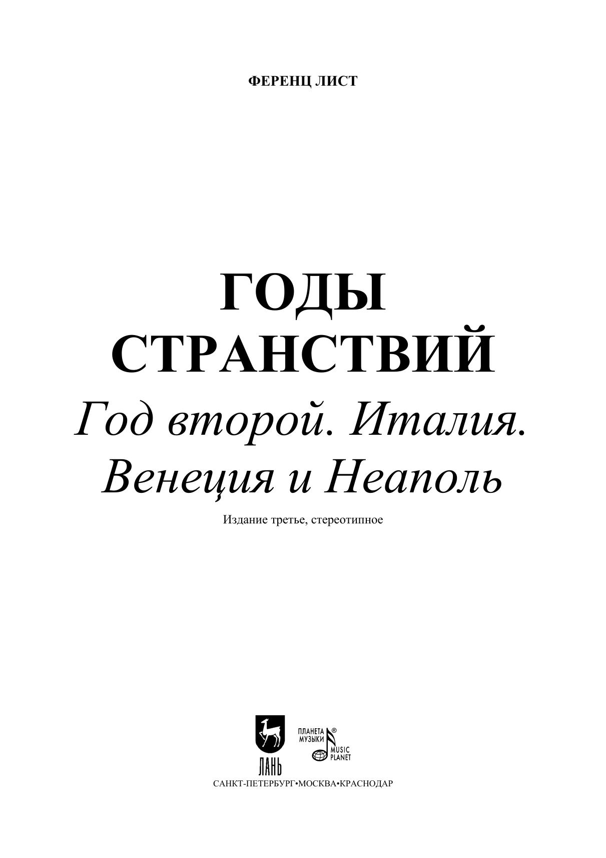 Годы странствий. Год второй. Италия. Венеция и Неаполь