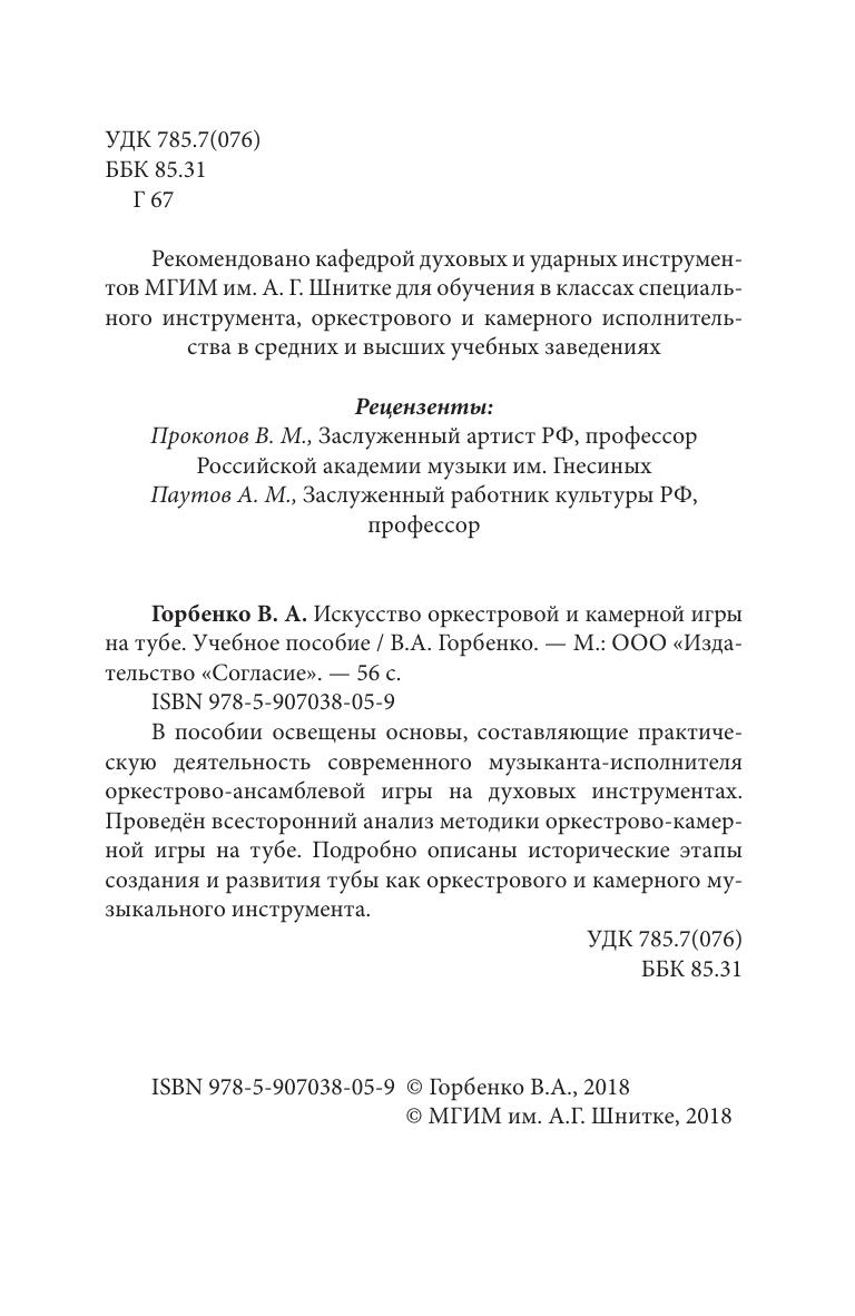 В пособии освещены основы, составляющие практическую деятельность современного музыканта-исполнителя оркестрово-ансамблевой игры на духовых инструментах. Проведён всесторонний анализ методики оркестрово-камерной игры на тубе. Подробно описаны исторические этапы создания и развития тубы как оркестрового и камерного музыкального инструмента.