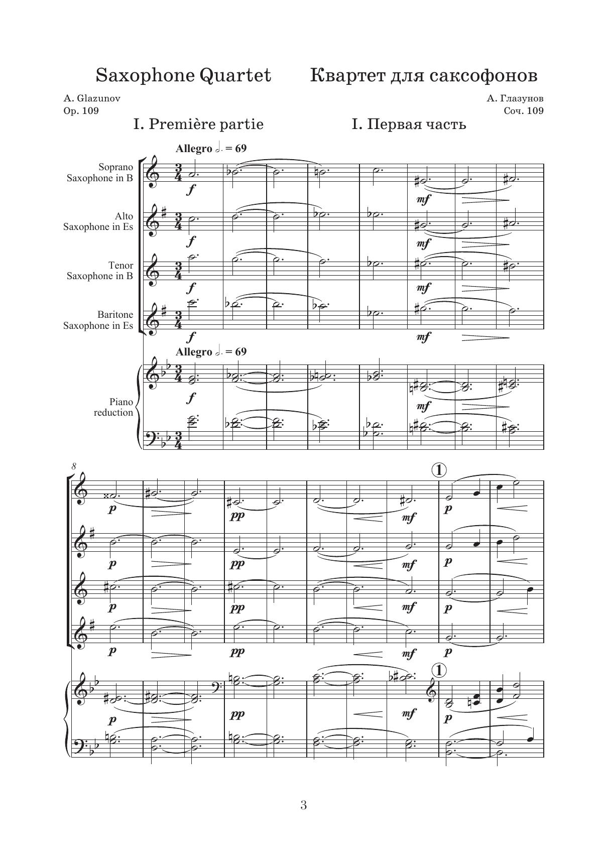 Квартет для саксофонов B-dur, соч. 109. Партитура, клавир и партии