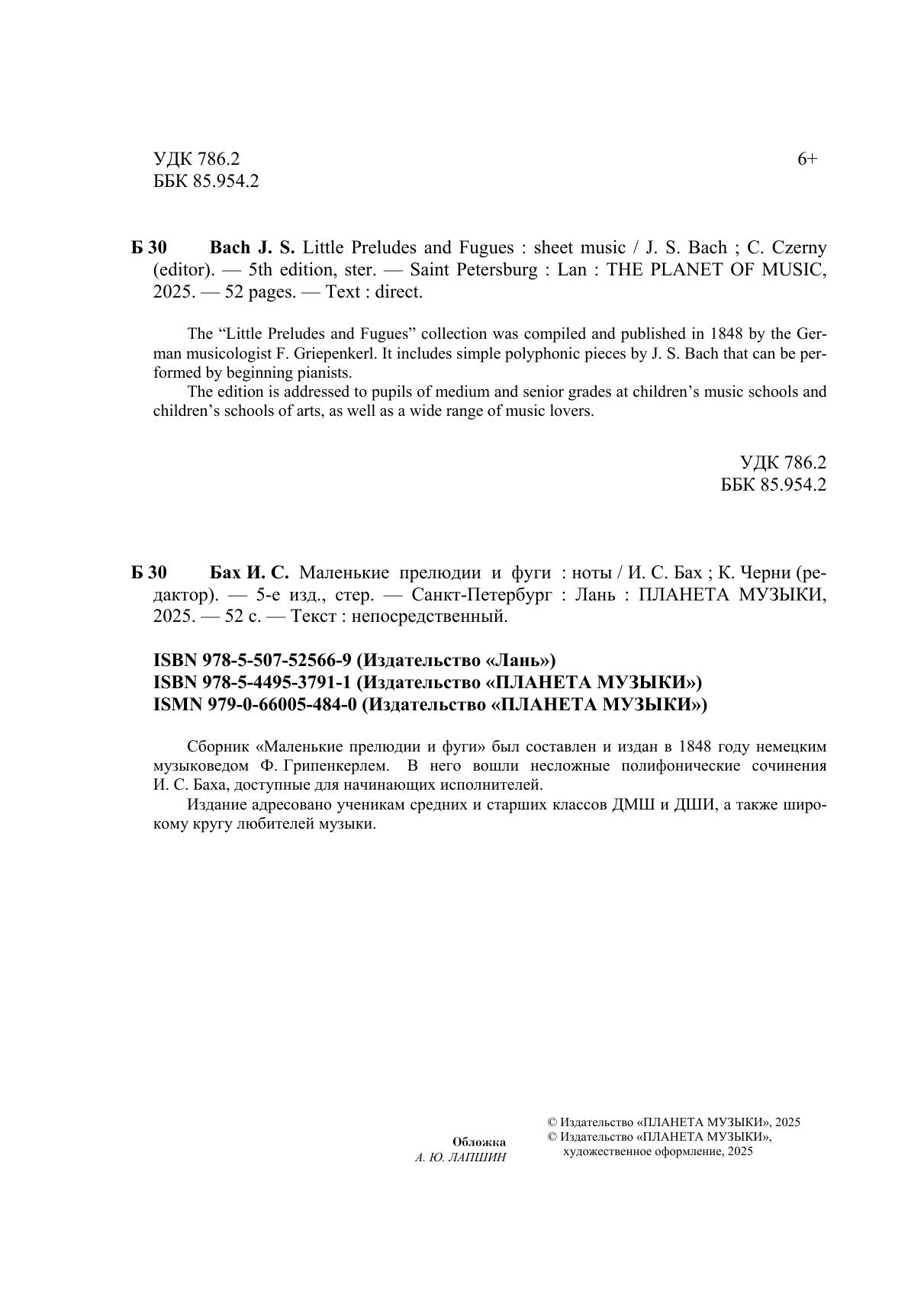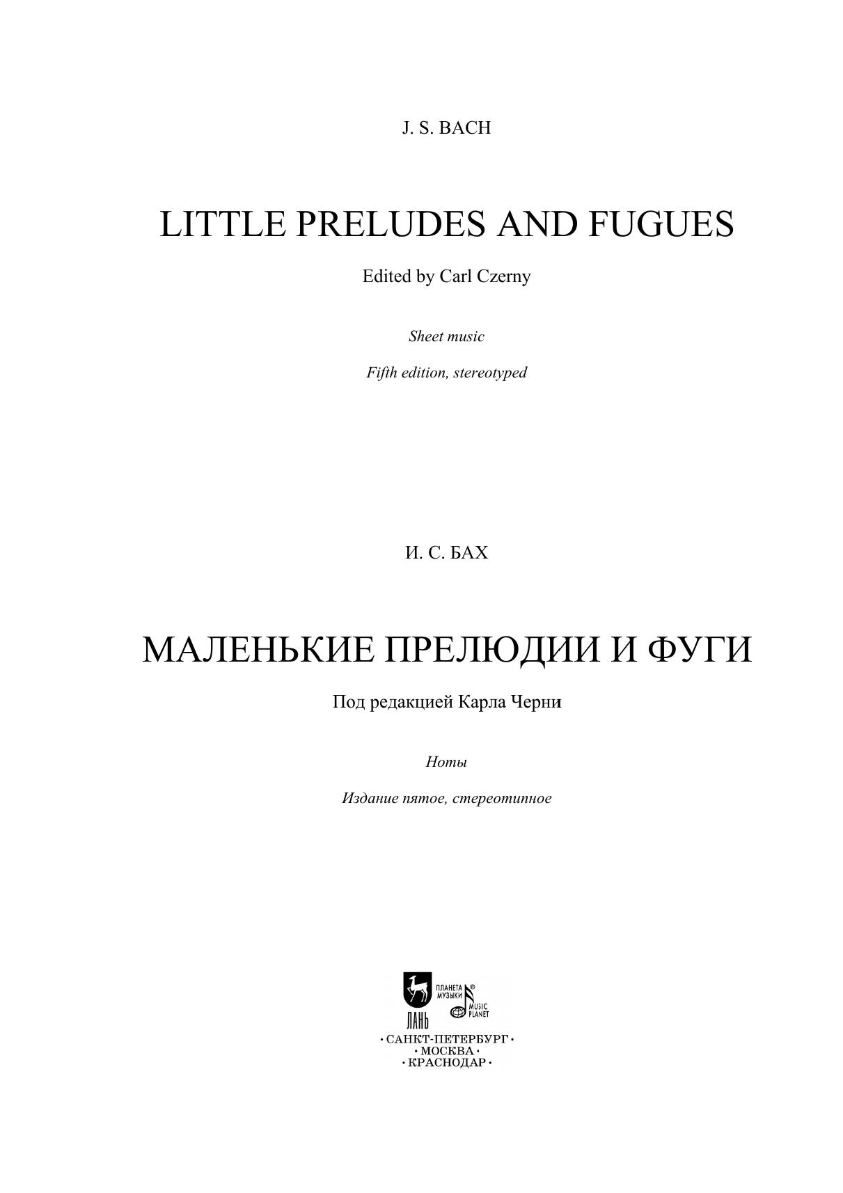 Сборник "Маленькие прелюдии и фуги" был составлен и издан в 1848 году немецким музыковедом Ф. Грипенкерлем. В него вошли несложные полифонические сочинения И. С. Баха, доступные для начинающих исполнителей. Издание адресовано ученикам средних и старших классов ДМШ и ДШИ, а также широкому кругу любителей музыки.