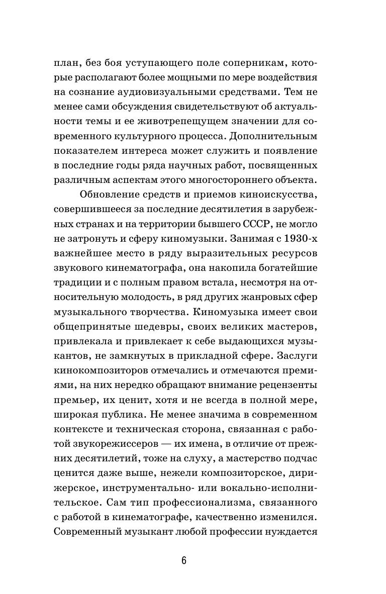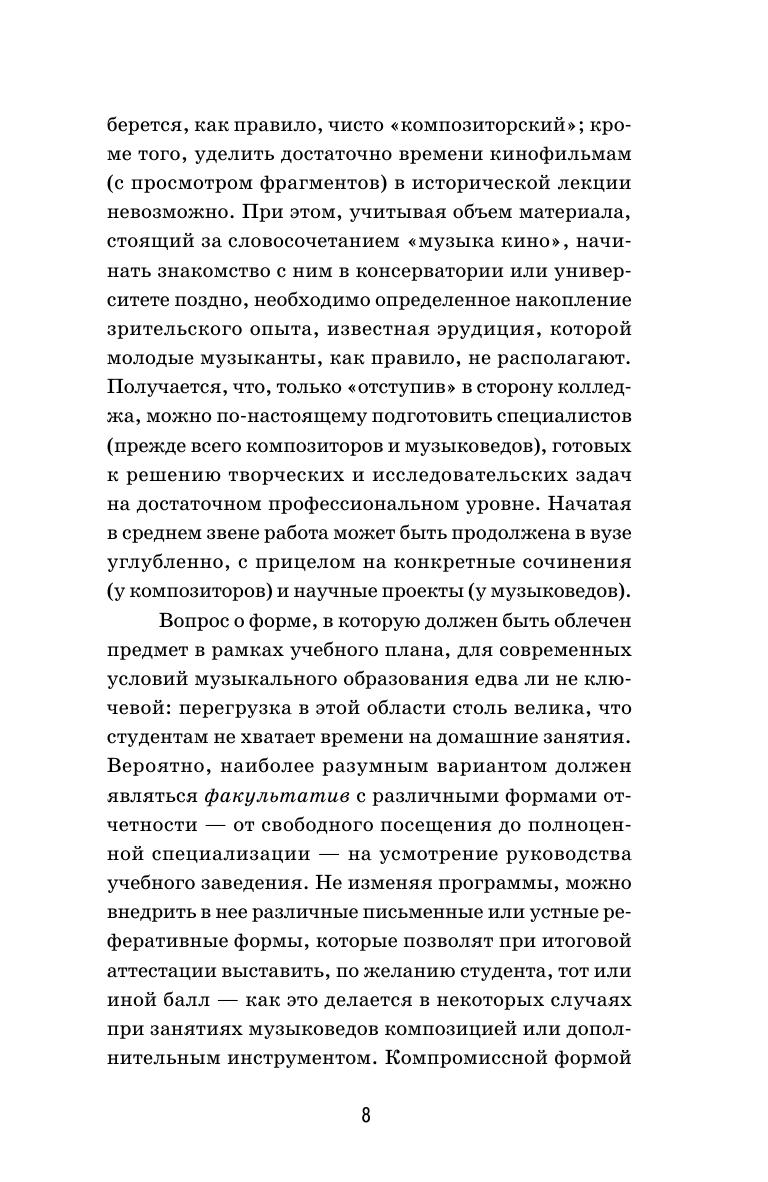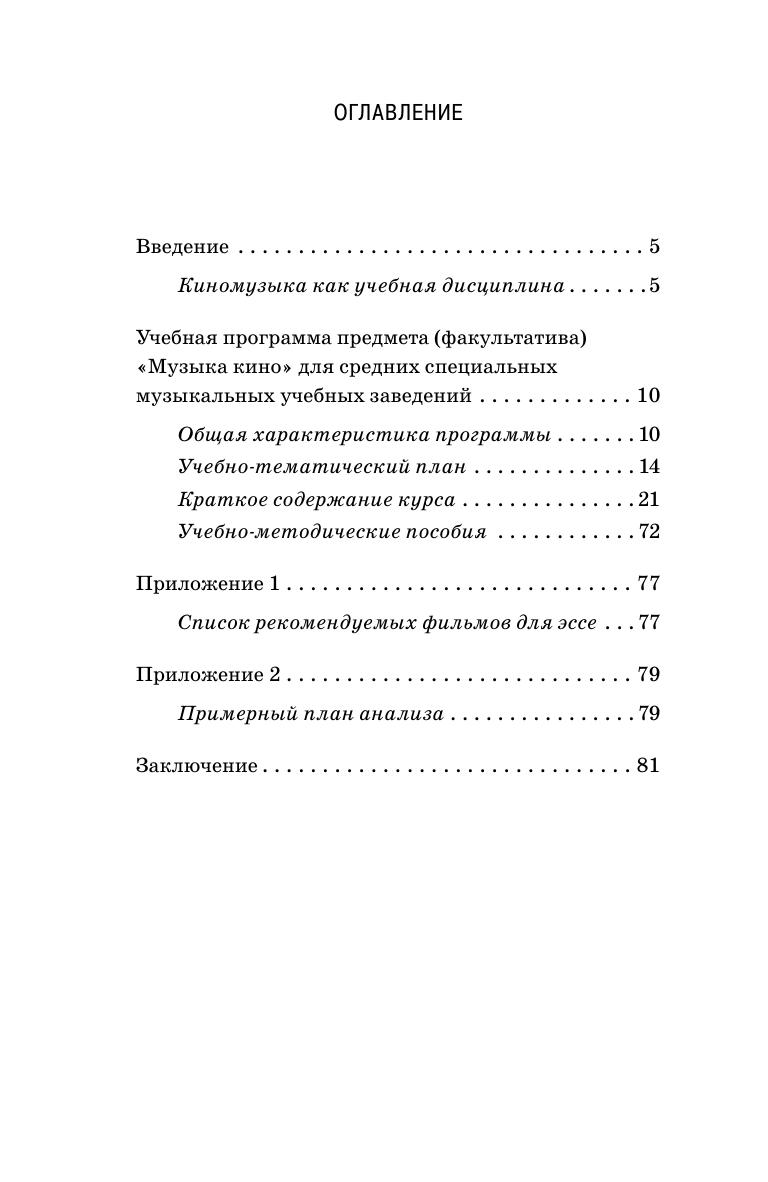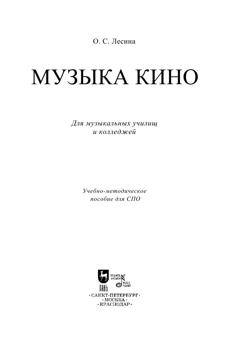Современный музыкант любой профессии нуждается в умении слышать и понимать музыку фильма на уровне просвещенного любителя, проникать в тонкости этого дела и разбираться в его производственной специфике. Курс «Музыка кино» предназначен для студентов средних специальных музыкальных учебных заведений. Он призван дополнить и расширить круг знаний, получаемых ими в ходе освоения музыкально-теоретических дисциплин: истории музыки, гармонии, музыкальной формы, инструментоведения и пр., а также предметов общегуманитарного цикла: литературы, истории, истории искусства. Соответствует современным требованиям Федерального государственного образовательного стандарта среднего профессионального образования и профессиональным квалификационным требованиям. A contemporary musician of any profession has to be able to listen and understand film music with the skills of an advanced amateur, to feel the nuances of this sphere and to understand its production specifics. The “Film Music” course is intended for students of music colleges. It is intended to deepen and expand the knowledge students get while mastering music theory subjects, like music history, harmony, musical form, instrumentation, etc., as well as general humanities subjects: literature, history, arts history. Corresponds to the modern requirements of the Federal State Educational Standard of Secondary Vocational Education and professional qualification requirements.