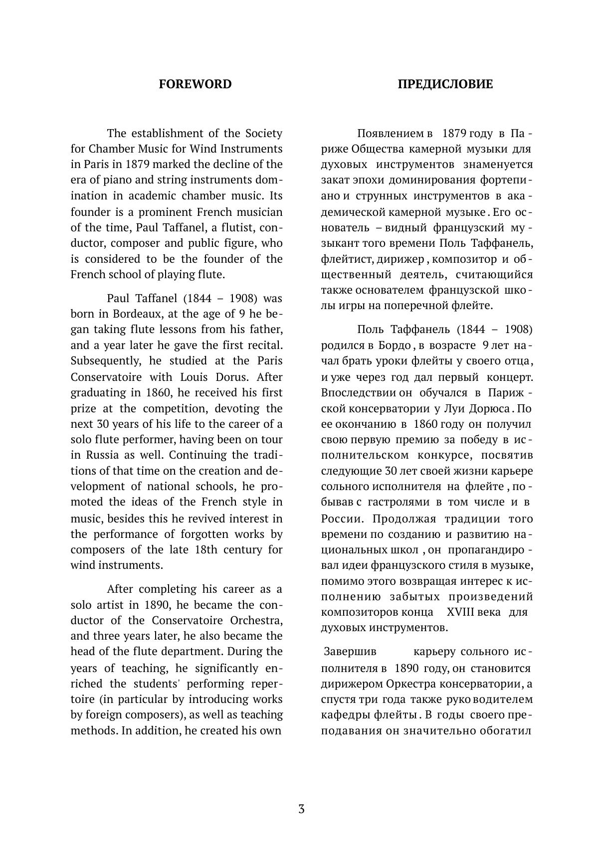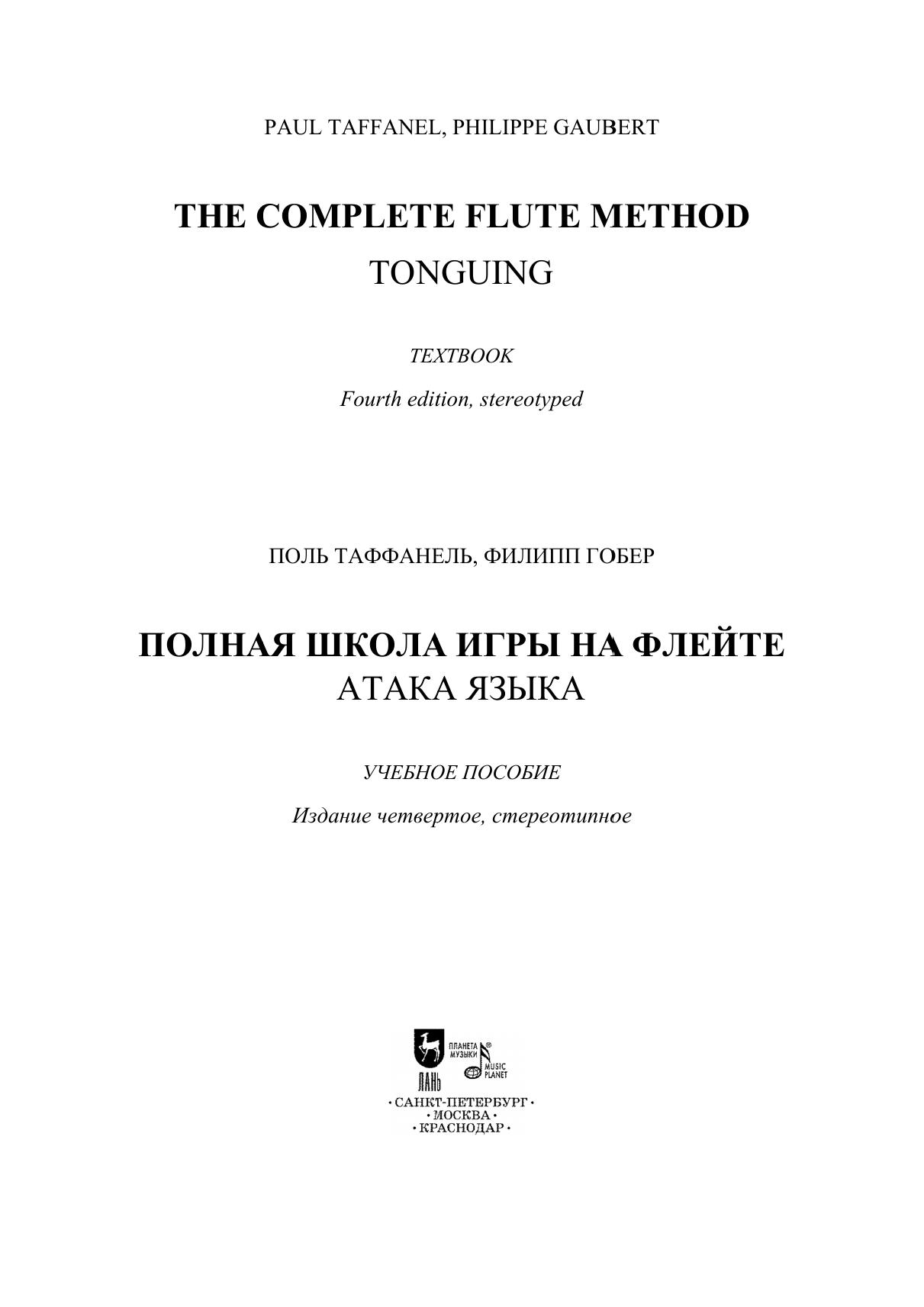Поль Таффанель (1844–1908) — французский флейтист, композитор и педагог, воспитавший не одно поколение исполнителей. В соавторстве с учеником и последователем Филиппом Гобером (1879–1941) он создал учебное пособие «Полная школа игры на флейте», которое и по сей день является важнейшим подспорьем для образования исполнителя-флейтиста, являясь своеобразной «энциклопедией игры на флейте». Данный сборник содержит в себе один из восьми разделов этого труда, а именно третью главу «Атака языка», посвященную развитию артикуляционных способностей флейтиста. Представлены рекомендации по работе ученика над одинарной, двойной и тройной атакой языка в различных комбинациях, сопровождаемые многочисленными упражнениями и пьесами для одной и двух флейт, вторую из которых может играть преподаватель. Этот сборник адресован всем флейтистам, желающим добиться четкой атаки языка при исполнения более сложных произведений.