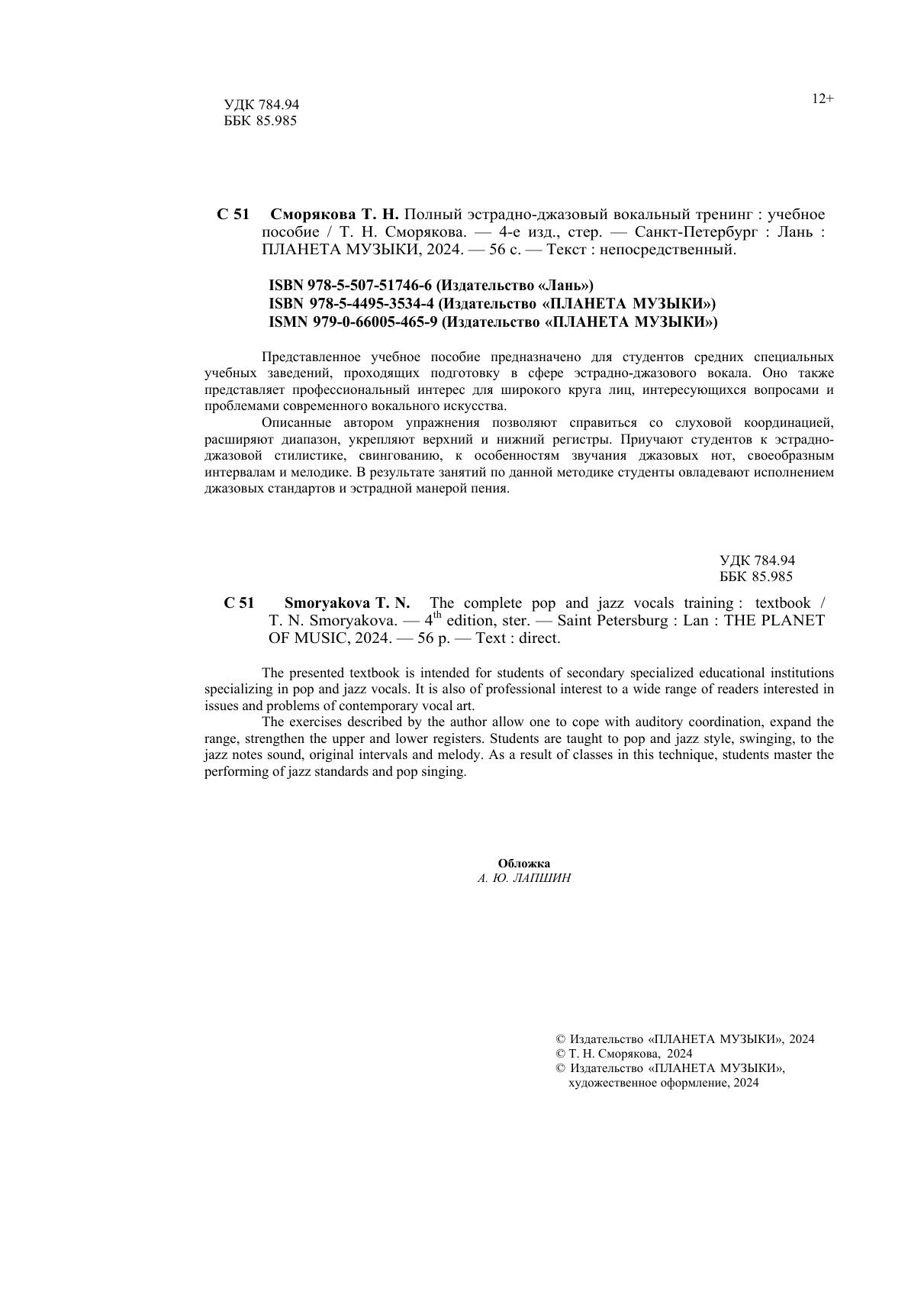 Представленное учебное пособие предназначено для студентов высших и средних специальных учебных заведений, проходящих подготовку в сфере эстрадно-джазового вокала. Она также представляет профессиональный интерес для широкого круга лиц, интересующихся вопросами и проблемами современного вокального искусства. Описанные автором упражнения позволяют справиться со слуховой координацией, расширяют диапазон, укрепляю верхний и нижний регистры. Приучают студентов к эстрадно-джазовой стилистике, свингованию, к особенностям звучания джазовых нот, своеобразным интервалам и мелодике. В результате занятий по данной методике студенты овладевают исполнением джазовых стандартов и эстрадной манерой пения. The presented textbook is intended for students of higher and secondary specialized educational institutions specializing in pop and jazz vocals. It is also of professional interest to a wide range of readers interested in issues and problems of contemporary vocal art. The exercises described by the author allow one to cope with auditory coordination, expand the range, strengthen the upper and lower registers. Students are taught to pop and jazz style, swinging, to the jazz notes sound, original intervals and melody. As a result of classes in this technique, students master the performing of jazz standards and pop singing.