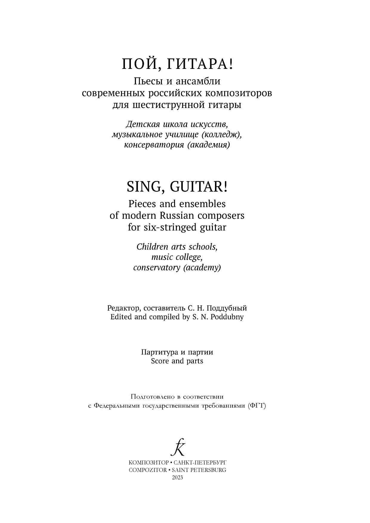 Пой, гитара. Пьесы и ансамбли современных российских композиторов для шестиструнной гитары. Детская школа искусств, музыкальное училище (колледж), консерватория (академия)