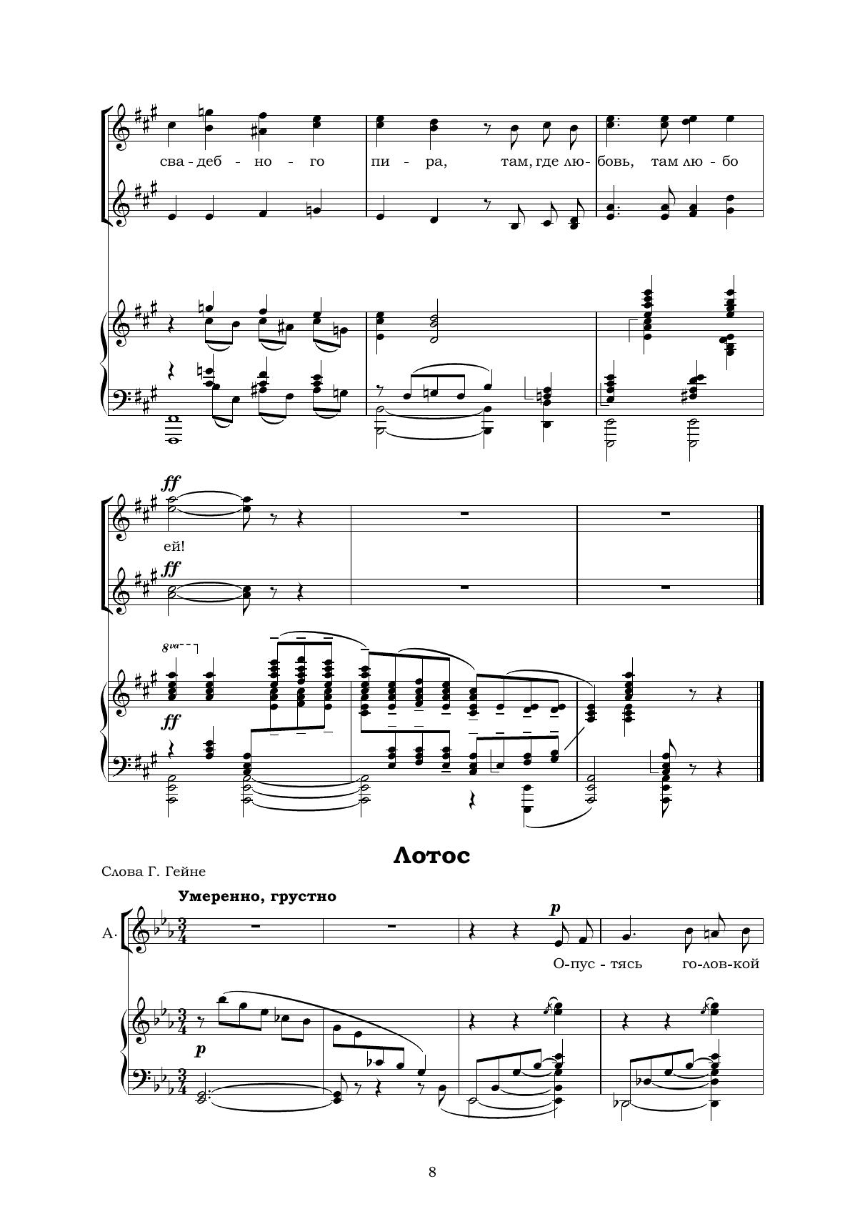 Произведения для женского хора в сопровождении фортепиано