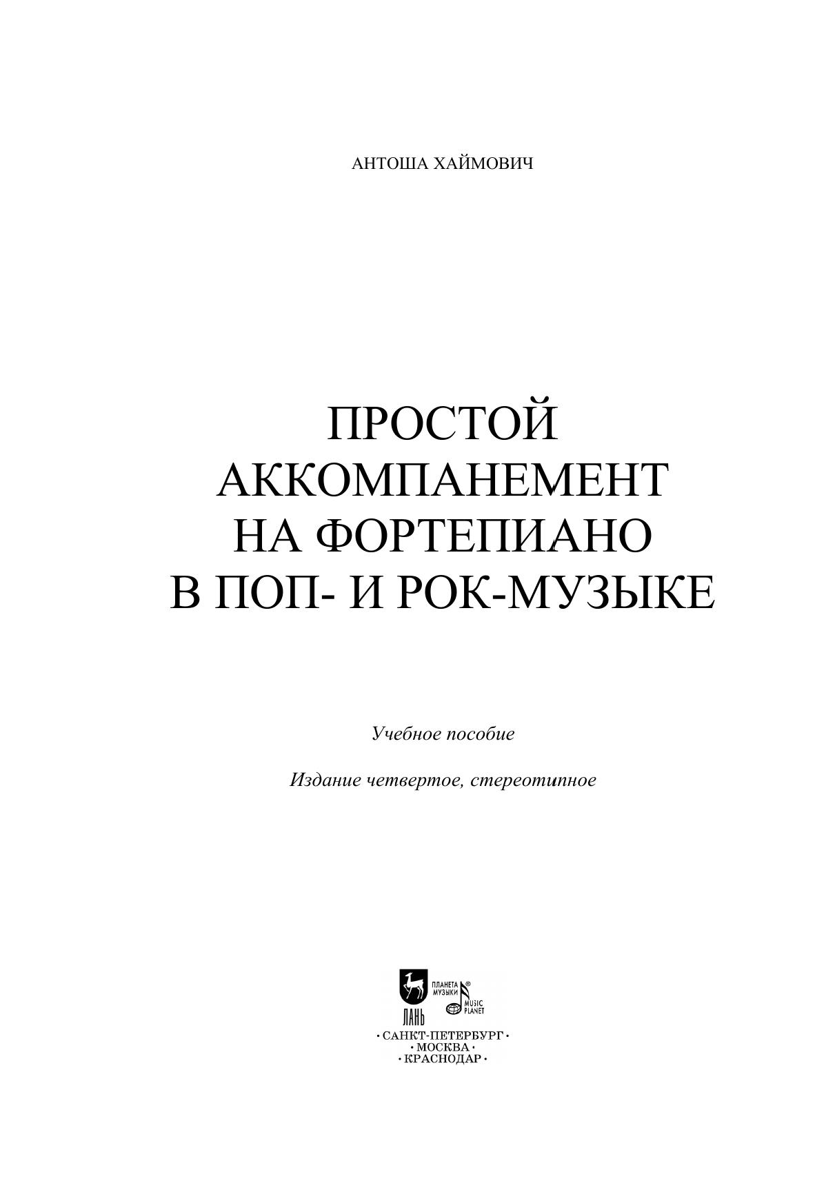 Владение фортепиано на элементарном уровне необходимо каждому музыканту. Самый востребованный навык в практике любого инструменталиста или вокалиста — простой фортепианный аккомпанемент, который очень распространён во множестве стилей поп- и рок–музыки. Первая часть данного учебного пособия содержит краткий курс упражнений на постановку рук и аппликатуру. Вторая часть состоит из семидесяти пяти вариантов ритмической фактуры. Заключительная, третья часть включает в себя сто пятьдесят один пример различных гармонических последовательностей, которые встречаются в современной музыке.