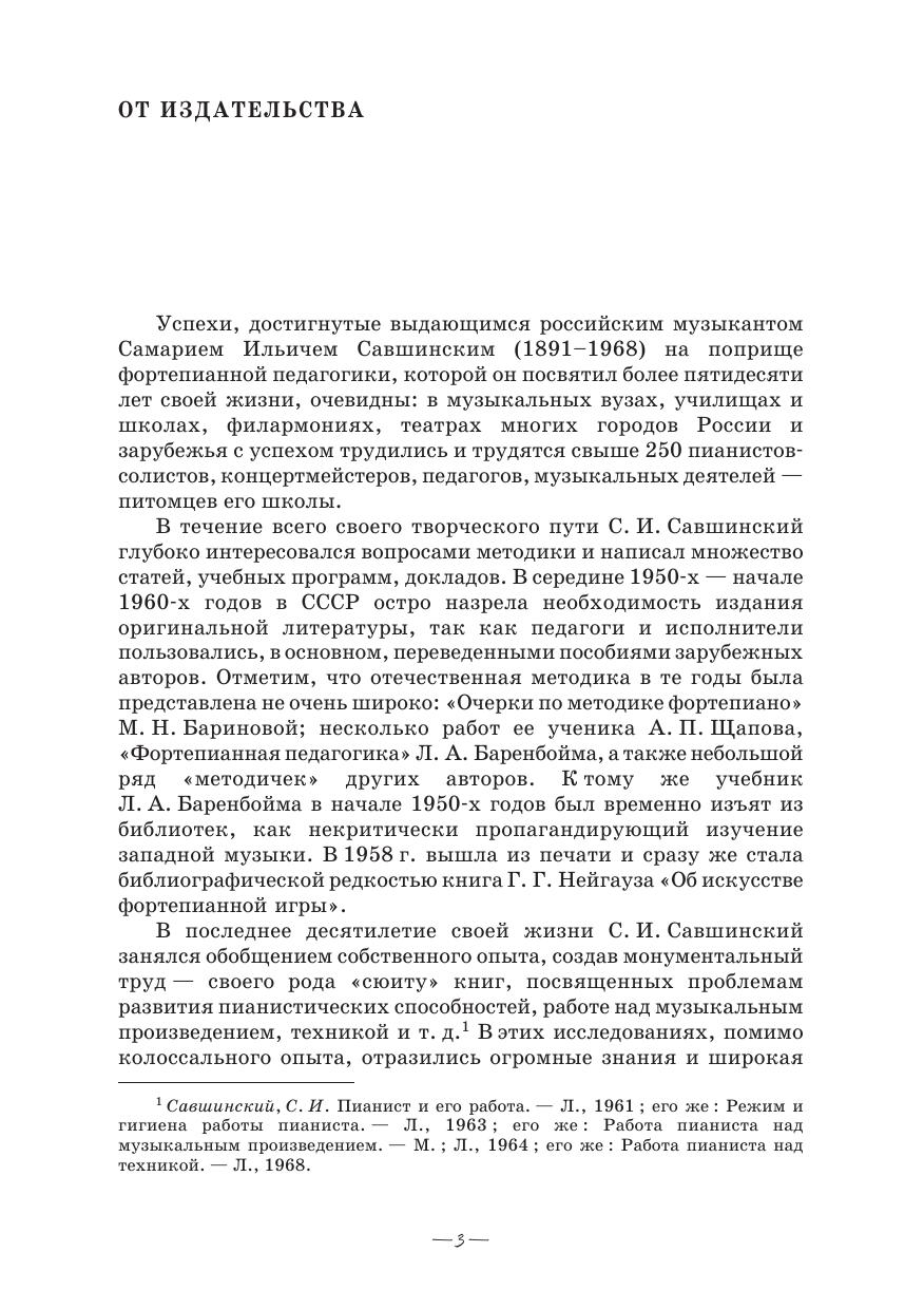 Автор книги, знаменитый профессор Ленинградской консерватории С. И. Савшинский, предлагает читателю универсальную систему, по которой можно строить работу над музыкальным произведением. Эта система призвана к получению максимального результата при минимуме усилий. Самое важное, что автор опирается на богатый опыт музыкантов-исполнителей XIX–XX вв., а также на опыт художников, писателей и известного физиолога Павлова. В этой книге можно найти ответы практически на все вопросы, касающиеся работы над музыкальным произведением. Книга адресована пианистам, педагогам и учащимся фортепианных направлений.