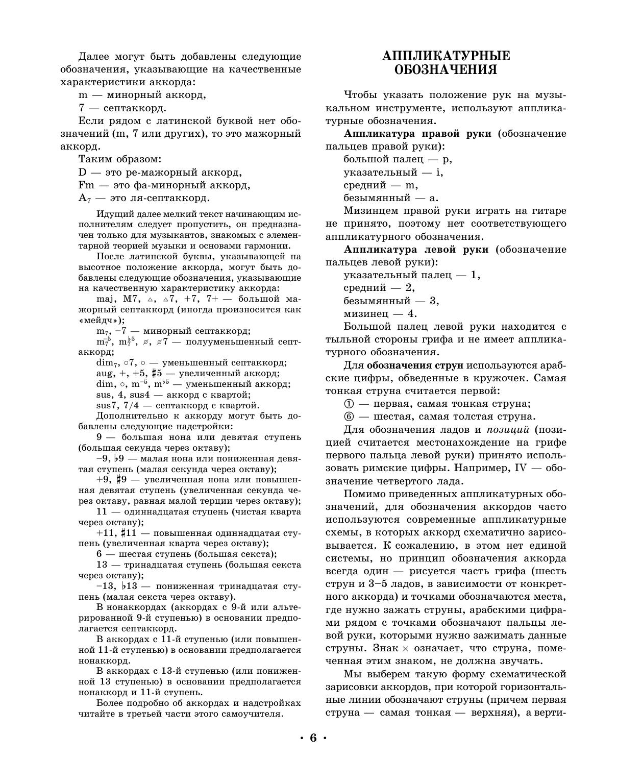 Пособие предназначено для самого широкого круга музыкантов и может быть полезно как тем исполнителям, которые хотят научиться играть на гитаре, не зная элементарной нотной грамоты, так и для гитаристов-профессионалов. Отдельная часть книги посвящена приемам джазового аккомпанемента — этот раздел будет полезен гитаристам с опытом. Автор самоучителя — преподаватель эстрадной гитары с 20-летним стажем, гитарист и аранжировщик известной санкт-петербургской группы «Зимовье Зверей». Примеры аккомпанемента песен из репертуара этой группы использованы в книге. К пособию прилагается компакт-диск.