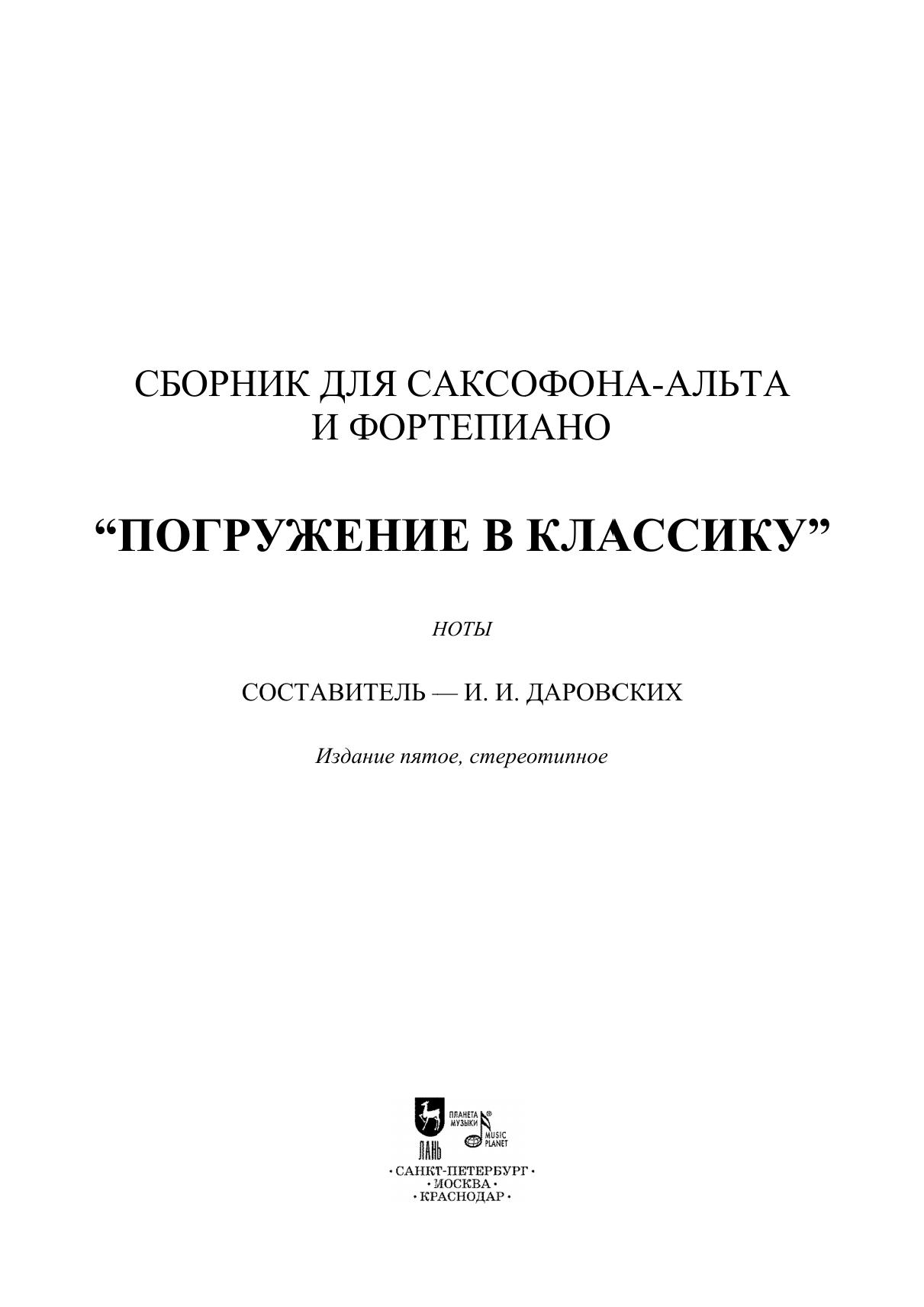 Сборник для саксофона-альта и фортепиано «Погружение в классику»