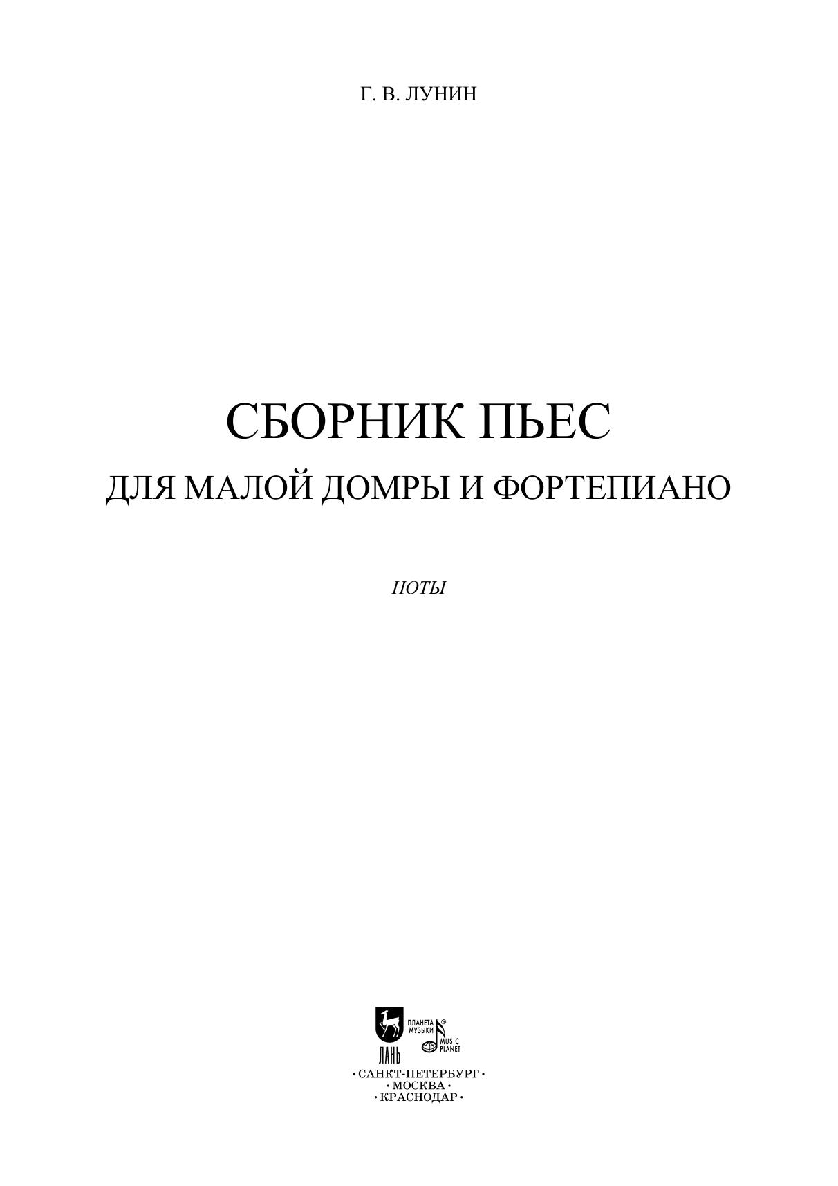 Сборник пьес для малой домры и фортепиано
