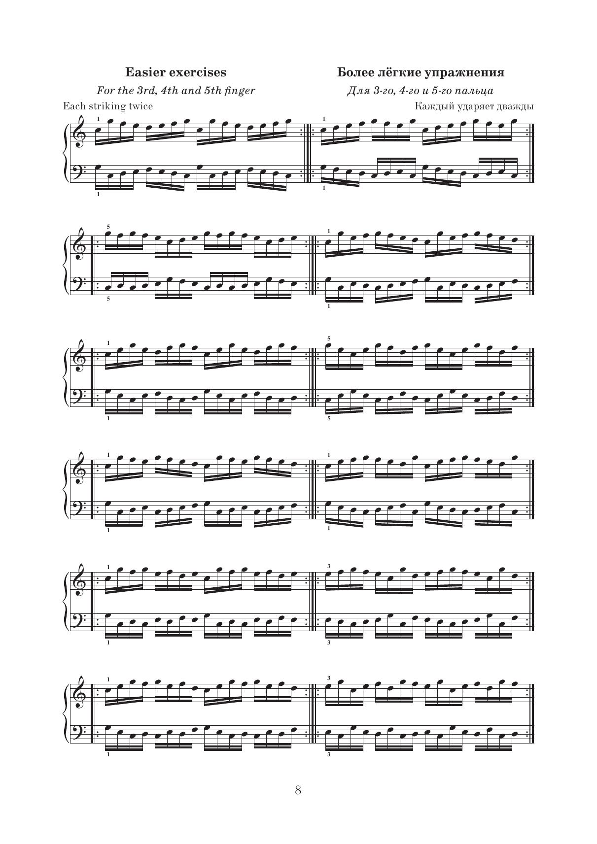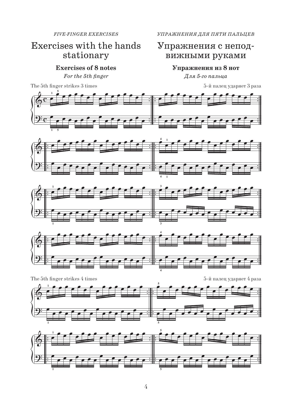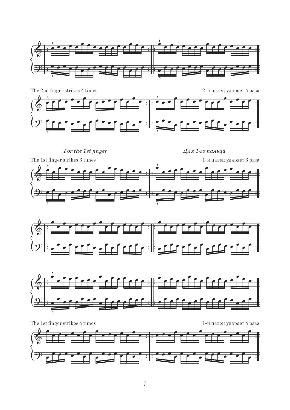 Школа пальцевой техники. Упражнения для пяти пальцев. Упражнения для подкладывания большого пальца