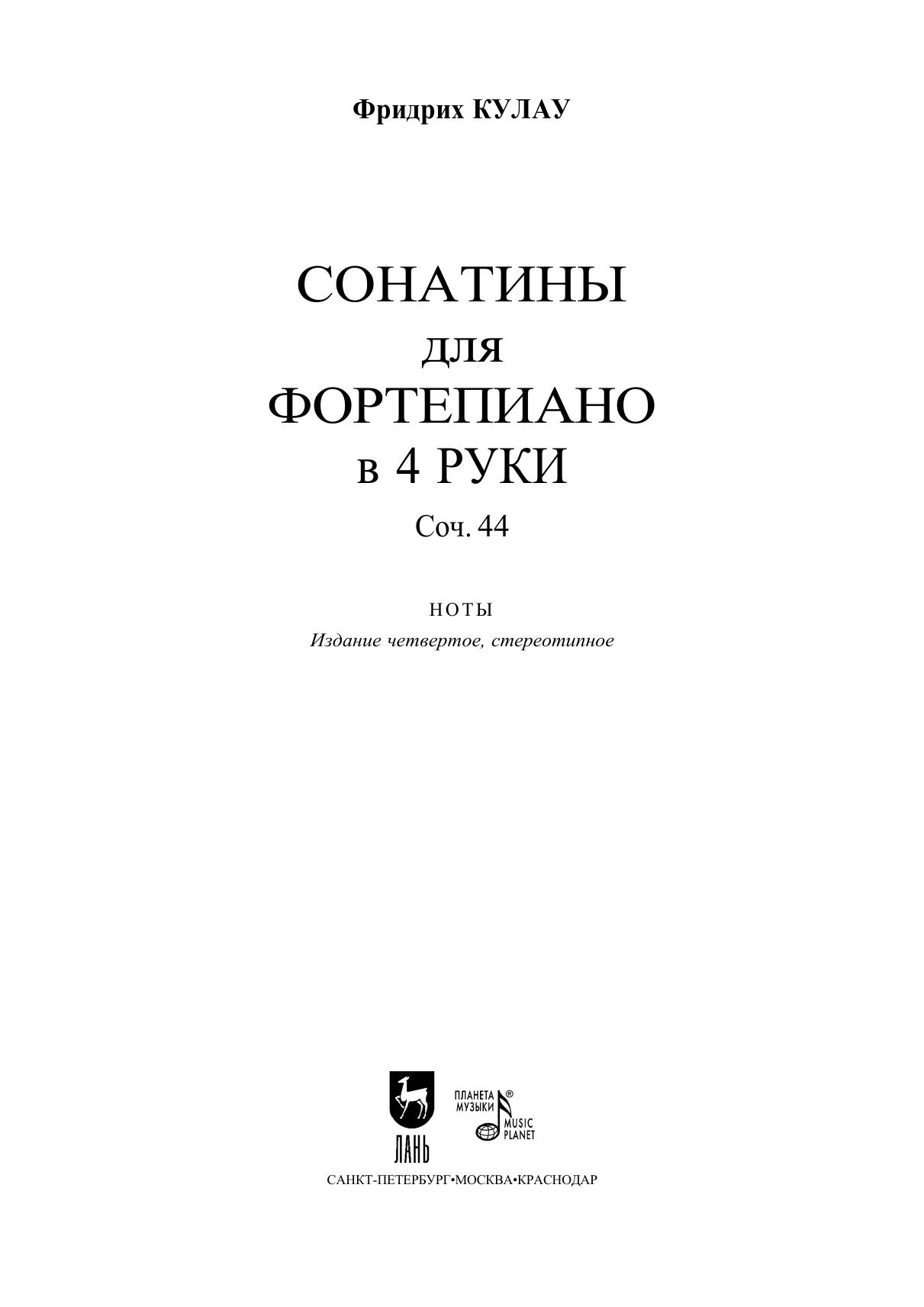Сонатины для фортепиано в 4 руки. Соч. 44