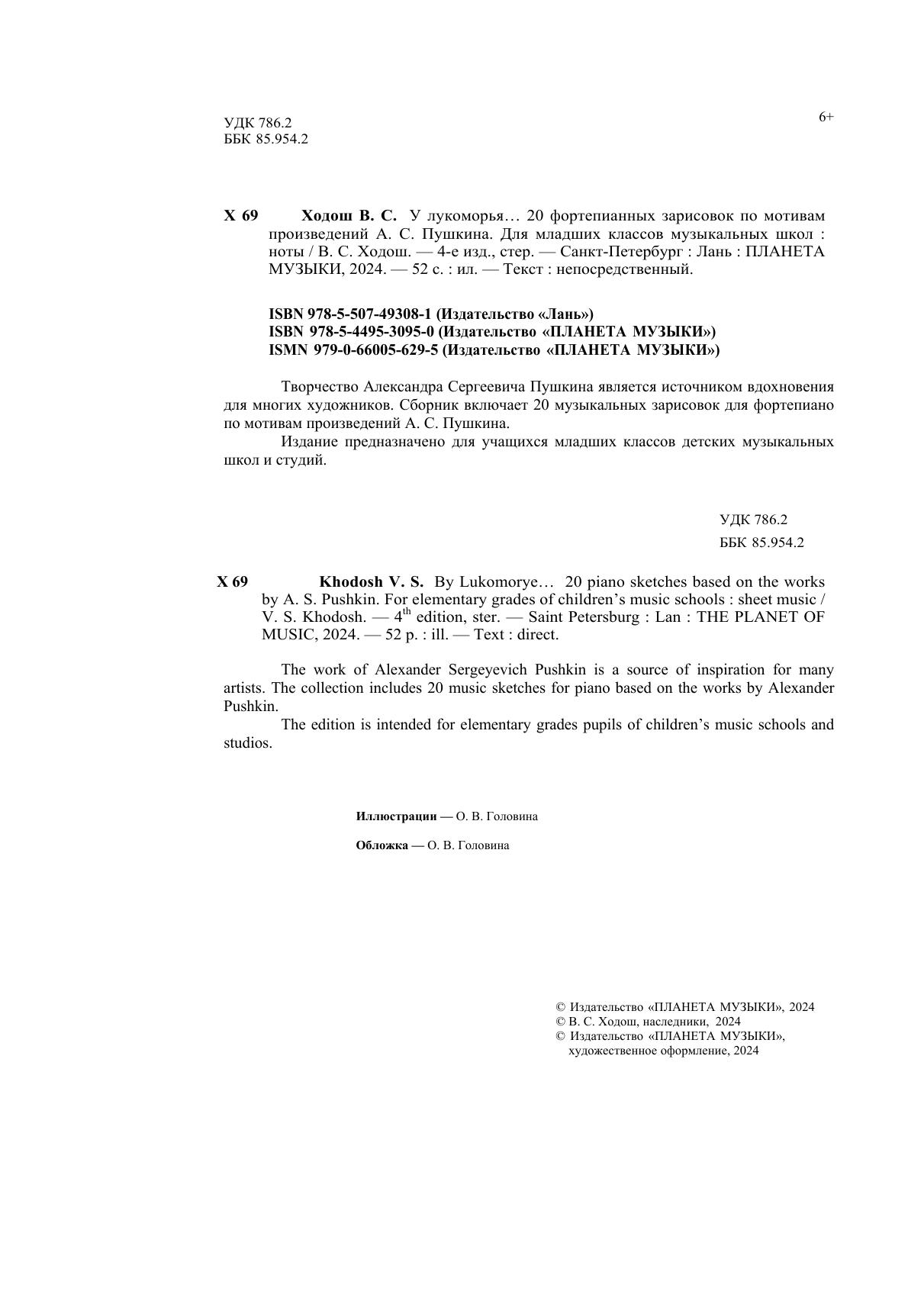 Творчество Александра Сергеевича Пушкина является источником вдохновения для многих художников. Сборник включает 20 музыкальных зарисовок для фортепиано по мотивам произведений А. С. Пушкина. Издание предназначено для учащихся младших классов детских музыкальных школ и студий.