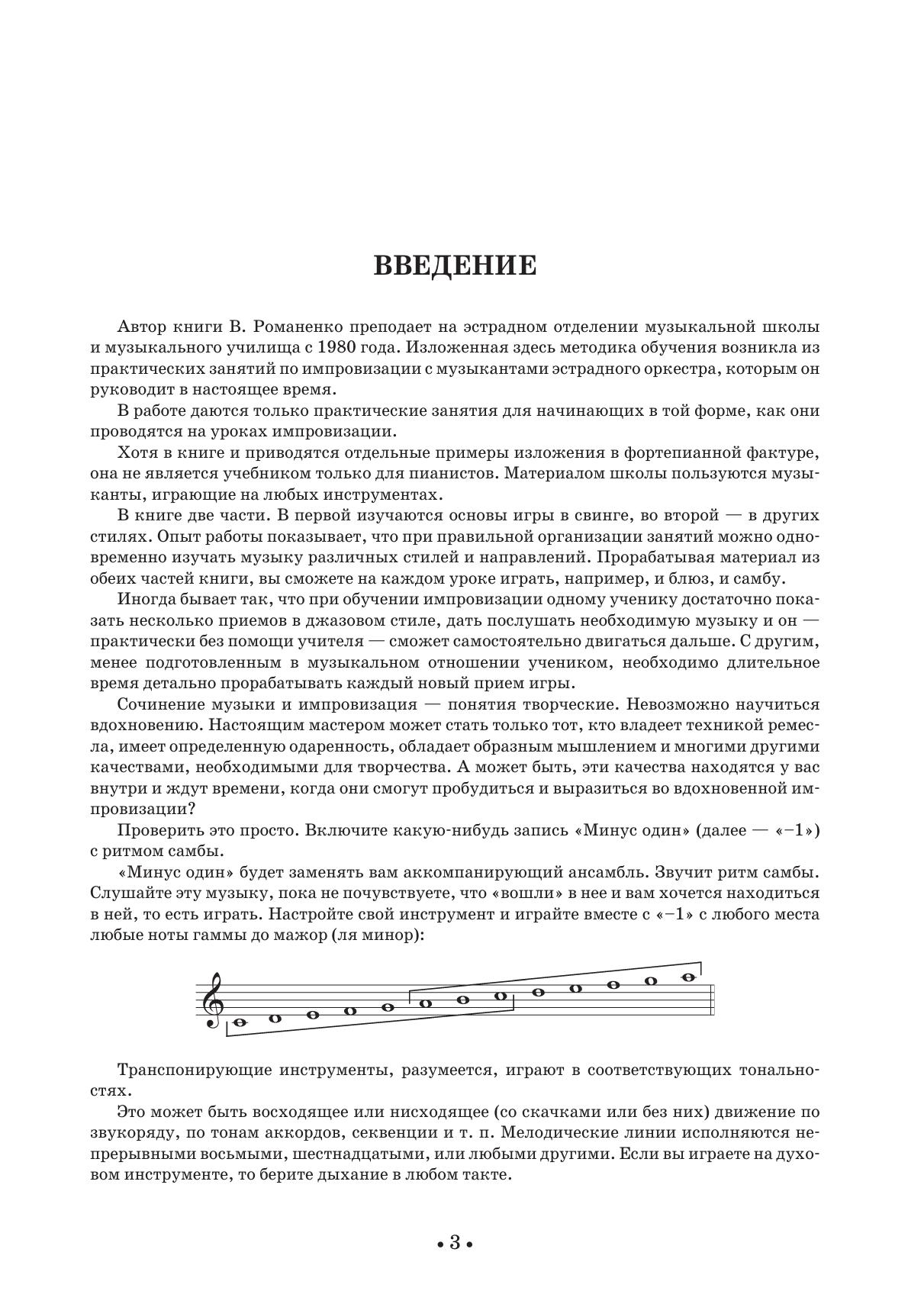 В книге изложена методика обучения, возникшая из практических занятий по импровизации с музыкантами эстрадного оркестра. Примеры даны в фортепианной фактуре, но эти материалы подходят для музыкантов, играющих на любых инструментах. Работа состоит из двух частей. В первой изучаются основы игры в свинге, во второй - в других стилях. Книга очень хороша для начинающих, так как объясняет элементарные понятия импровизации - фразировку, построение и т.п.