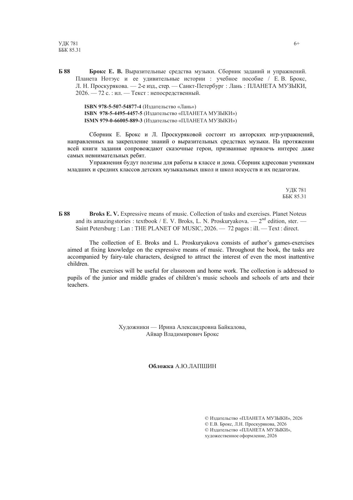 Сборник «Планета Нотэус» Е. Брокс и Л. Проскуряковой состоит из авторских игр-упражнений. В непростом путешествии в мир музыкальных инструментов ребятам помогают уже знакомые по первой части книги и новые сказочные персонажи. Задания способствуют закреплению знаний о строении и тембрах инструментов и будут полезны для работы в классе и дома. Сборник адресован ученикам младших и средних классов детских музыкальных школ и школ искусств и их педагогам.